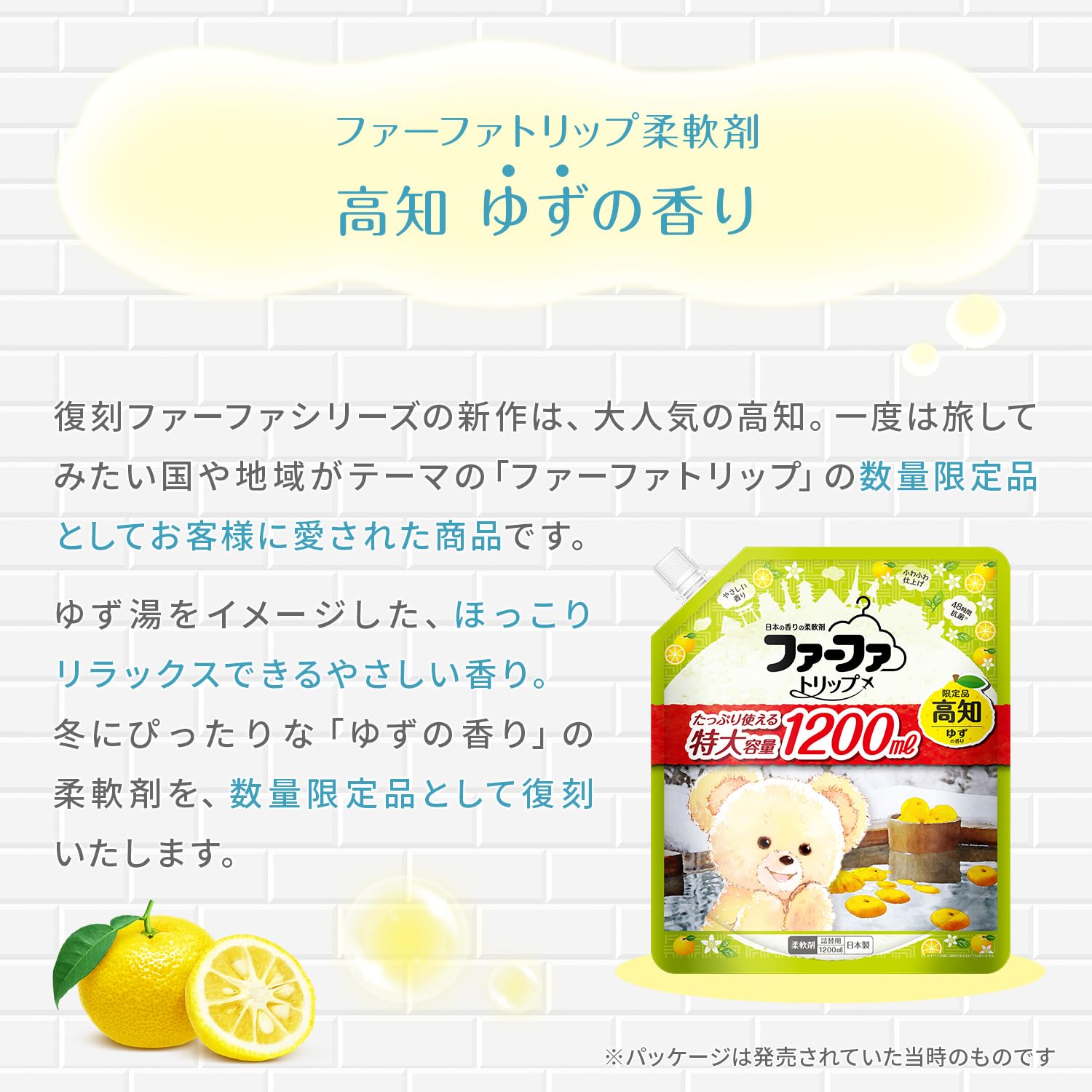 今回の復刻ファーファは、高知!ゆずの香りです。