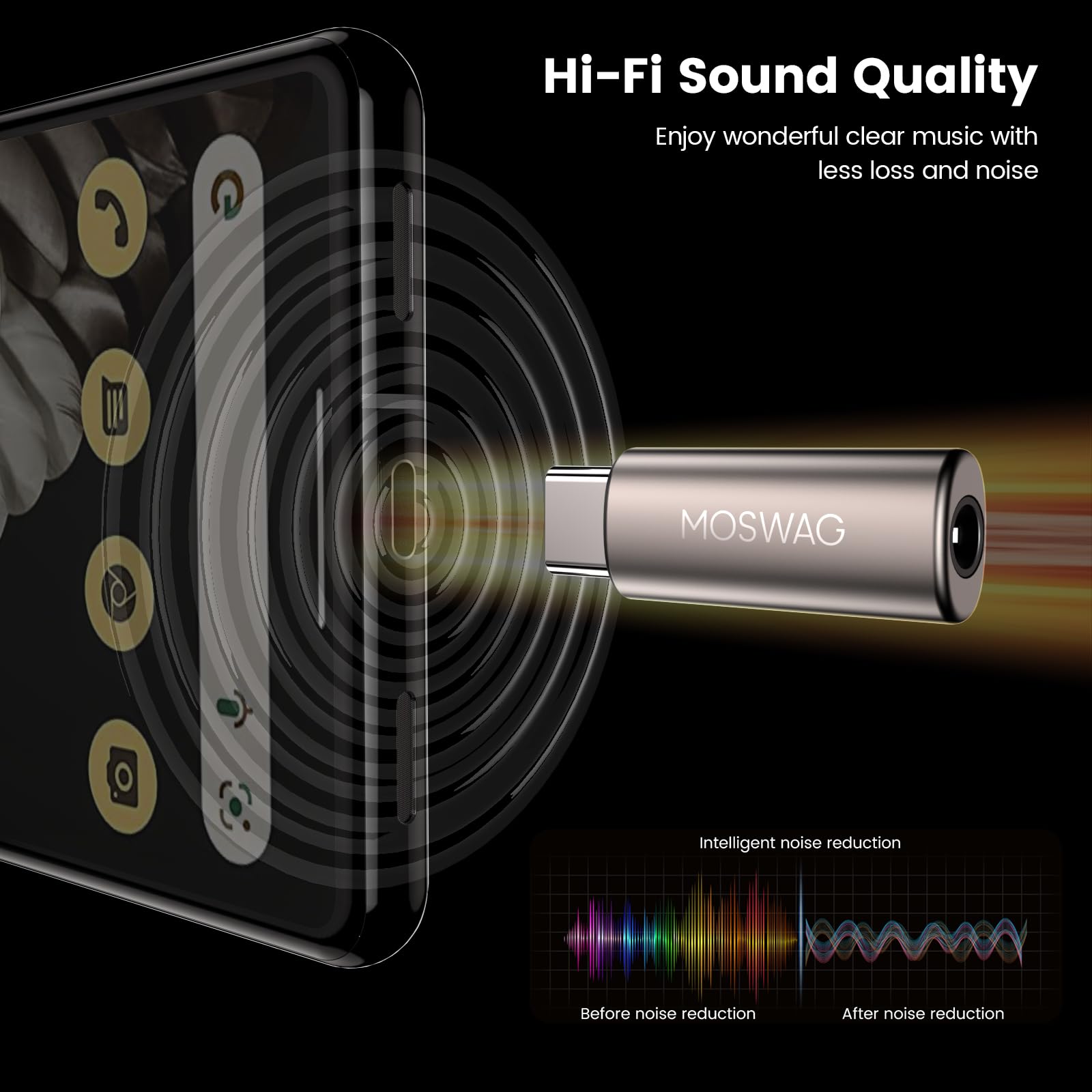 【在庫のみ】MOSWAGイヤホーンジャツク変換タイイプc(2個入り)、USB Type Cから3.5 mmヘッドホンオーディオアダプタ、ヘッドホン変換アダプタ音量調節/通話/音楽対応iPhone 15/16 Plus Pro Maxシリーズ、Pad、Mac、Androidなどのデバイスに対応