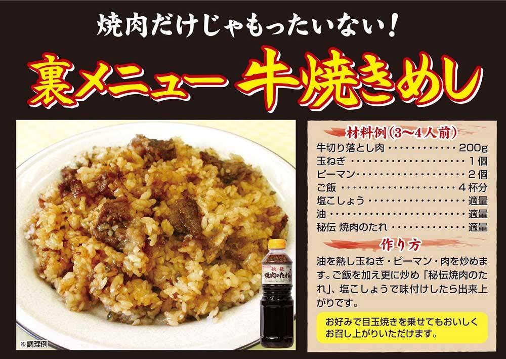 しょうゆをベースに、にんにく・玉ねぎ・生姜の香味野菜とりんごを使用し、ごま油で風味良く仕上げた、焼肉屋さんの秘伝のたれです。