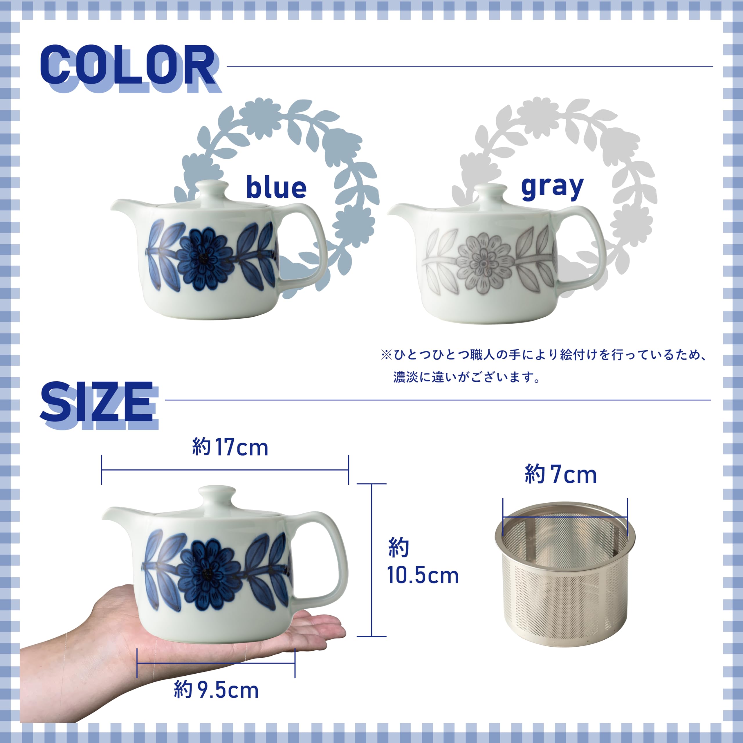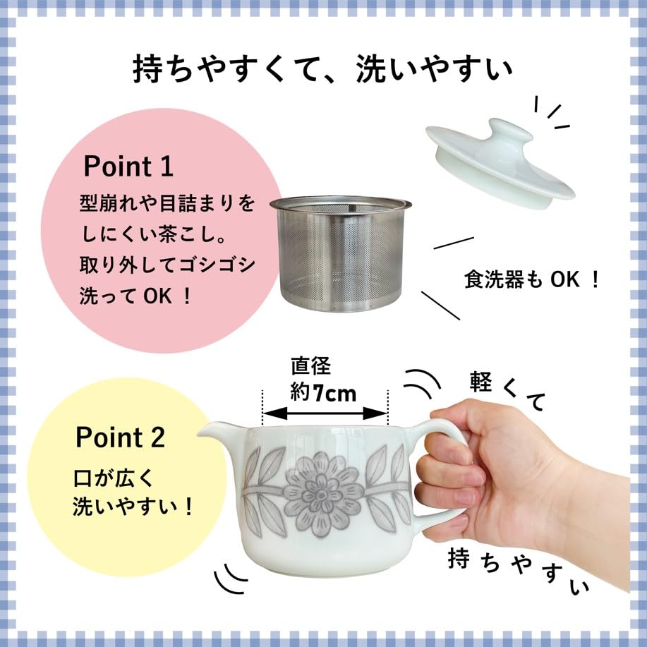 NISHIYAMA デイジー ポット S (グレー/茶こし付き / 1個) 波佐見焼 日本製 (電子レンジ対応/食洗機対応) ティーポット/コーヒーポット (陶器/急須)