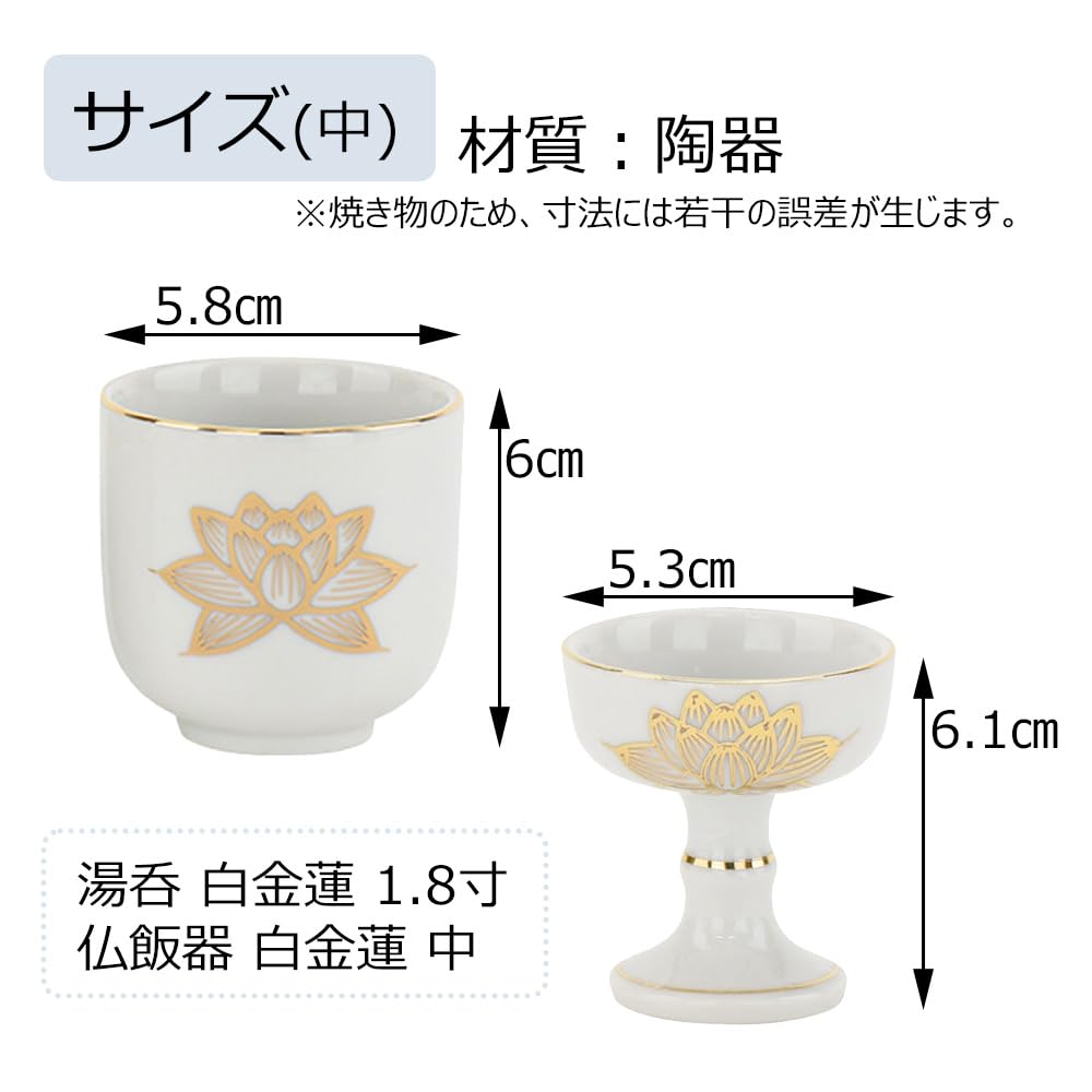 お仏壇のはせがわ 仏飯器 湯呑 仏具セット 2個セット (白金蓮/中) 日本製 仏飯 仏器 湯呑み (白/金蓮柄) 仏壇 仏具 仏壇用品