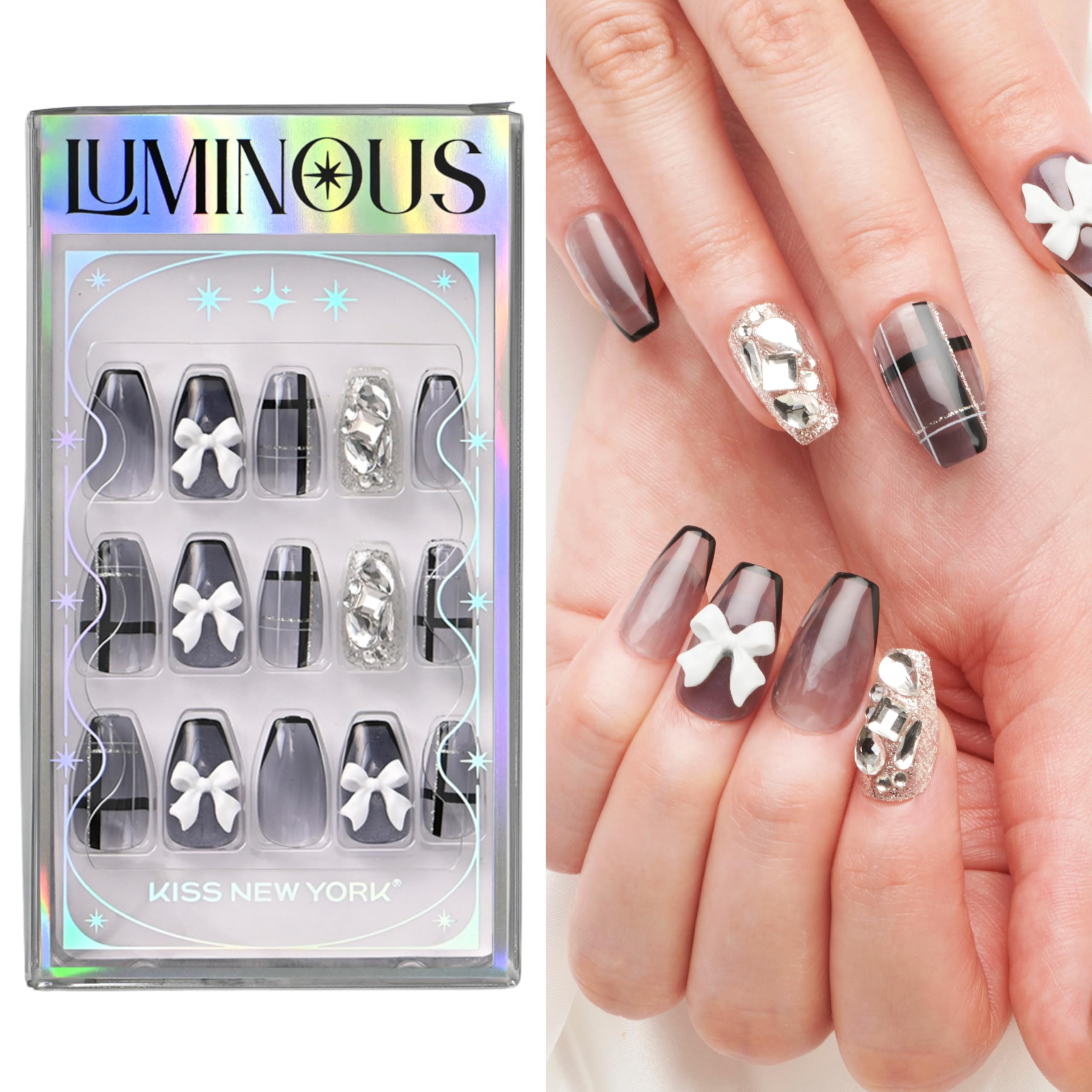 ? 【2. 世界のトレンド×日本限定「Luminous(ルミナス)」】 KISS NYは韓国・NY・ヨーロッパなど世界中のトレンドを取り入れたネイルデザインを展開。中でも日本限定の「Luminous(ルミナス)」は、蝶々・リボンなどの3D立体パーツやBIGストーン、煌めくグリッターをふんだんに使った、注目度抜群のシリーズ。貼るだけで“おしゃれな人”になれる、圧倒的な存在感を放ちます。