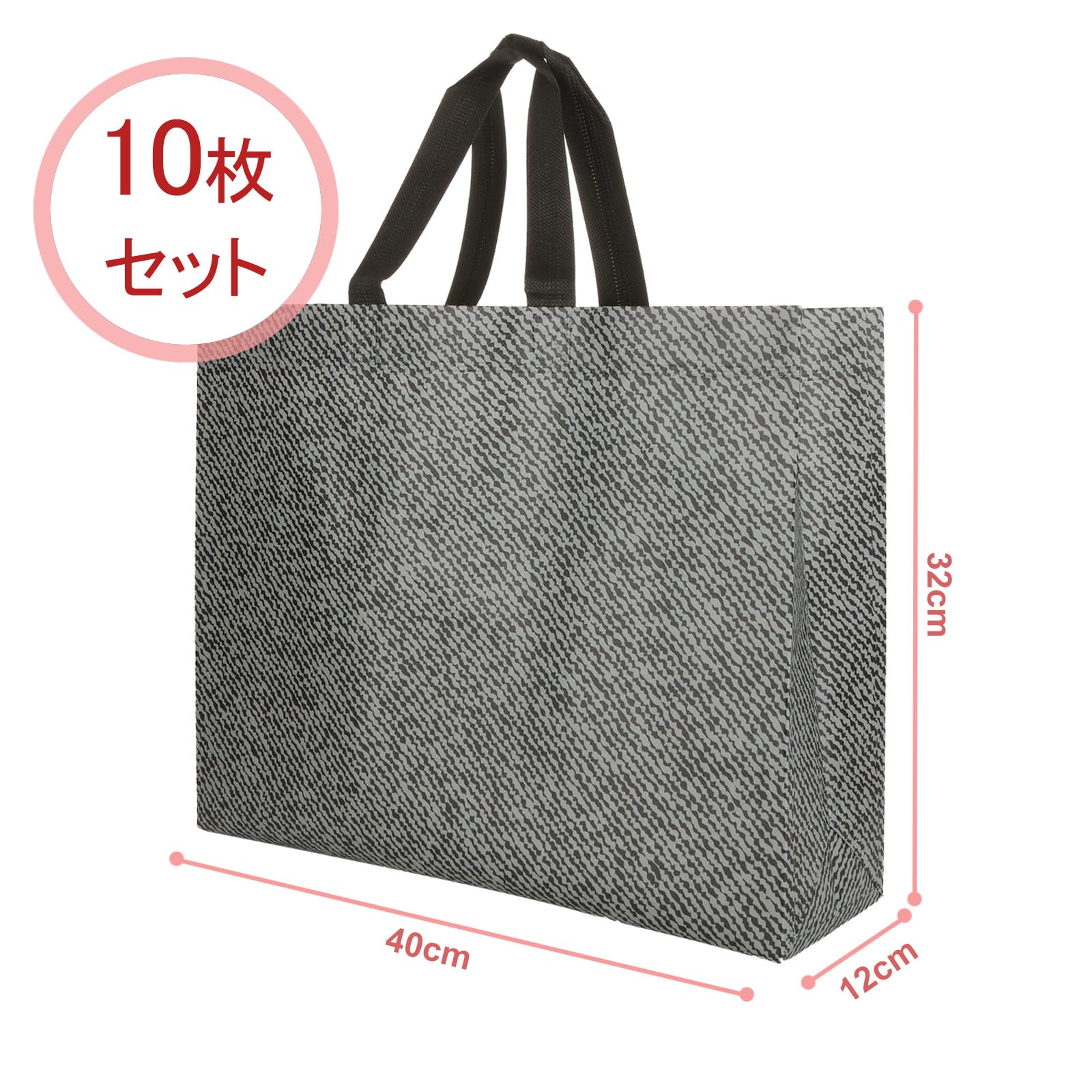 【数量限り】やぬき 10枚セット 不織布バッグ 大 40x32x12cm 不織布袋 手提げ袋 厚手タイプ 横 ギフト買い物バッグ 防水 オフィス 衣類収納 包装 ラッピング プレゼント 業務用 グレー