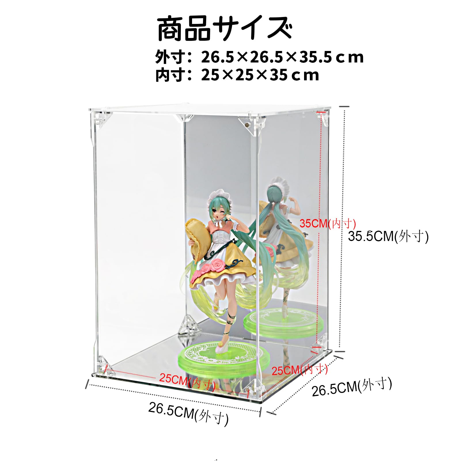 【在庫のみ】フィギュアケース【マグネット扉仕様】【UVカット】コレクション ディスプレイケース アクリル ボックス コレクションケース 台座・背面ミラー 幅25×奥行25×高さ35cm