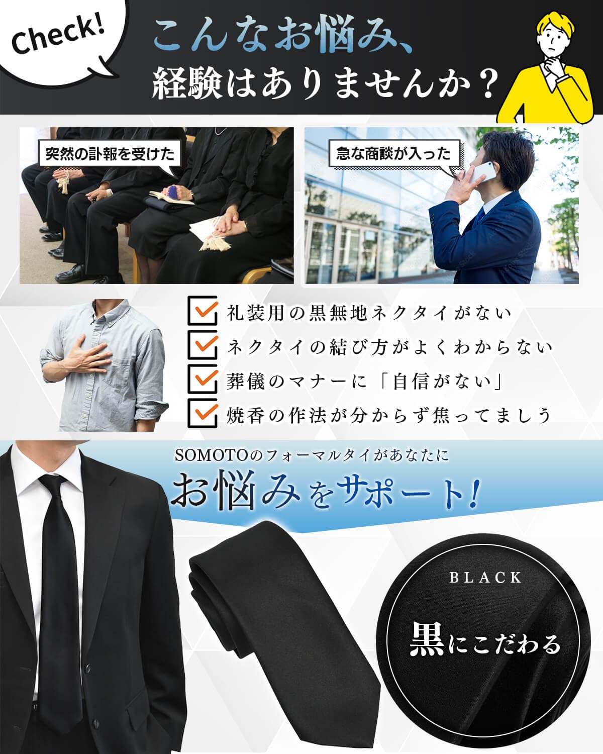 【特価処分】[SOMOTO] 葬祭プロ監修 ネクタイ 黒 葬式 冠婚葬祭 フォーマル メンズ 黒ネクタイ 無地 マット 礼装 喪服 葬儀【葬式ガイド付属】