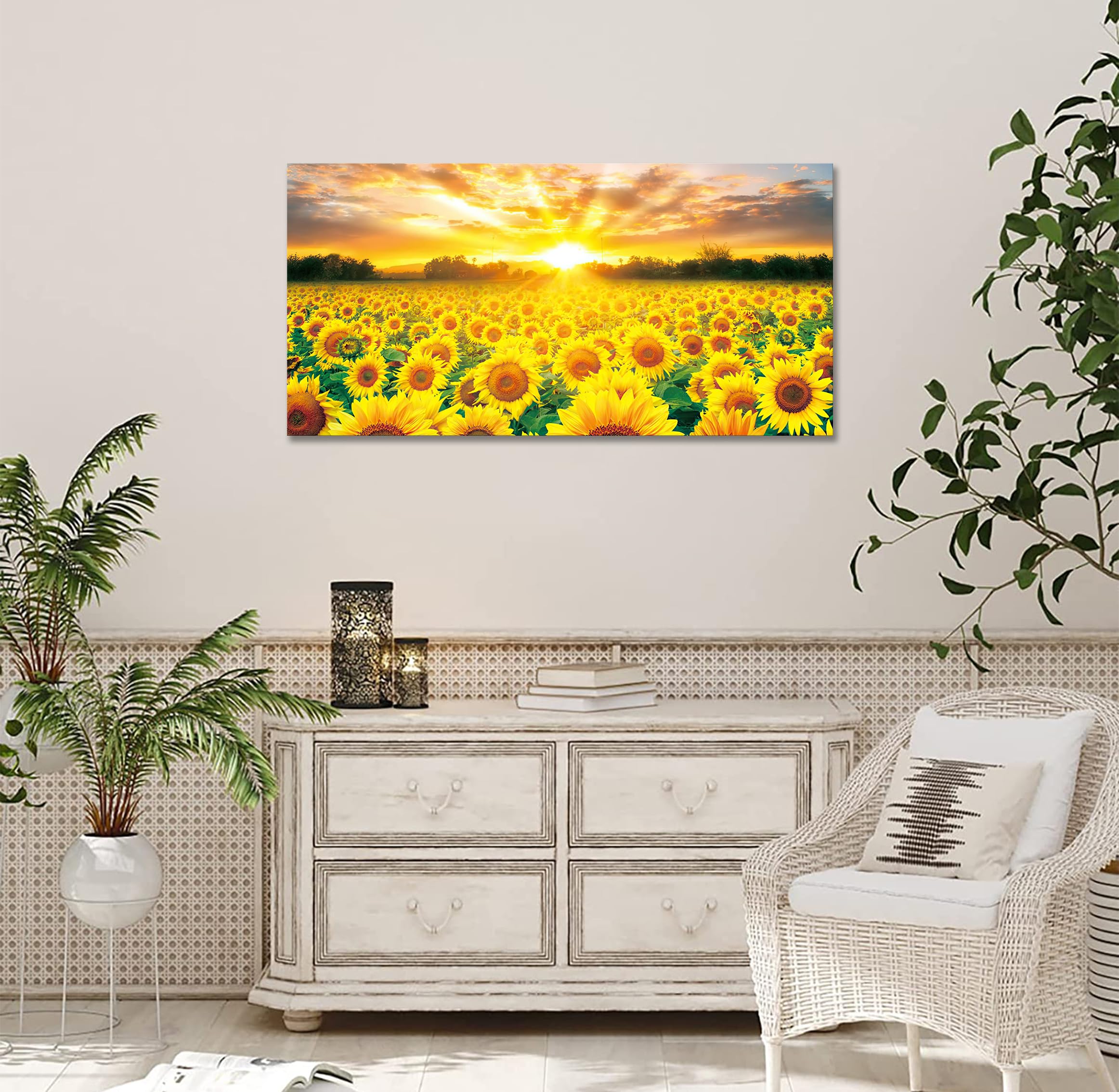 ひまわり アートパネル 絵画 インテリア 向日葵 ポスター 風景画 ウォールパネル 壁掛け装飾品 壁画 飲食店 開店祝い 風水 金運 絵 (40x80cm)