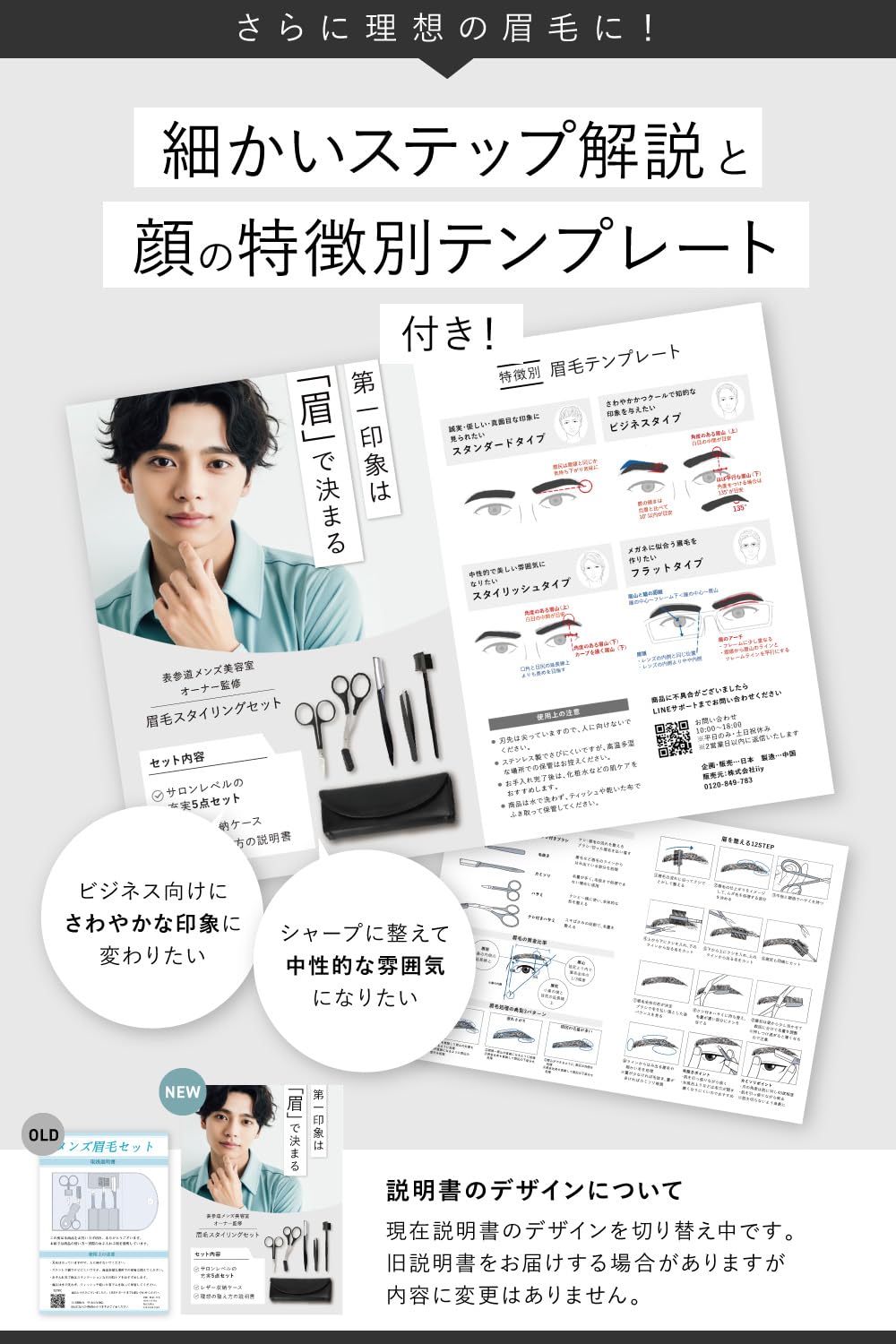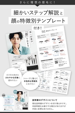 【顔の特徴別テンプレート付き】ビジネス向けにさわやかな印象、ホスト風の中世的な雰囲気など、顔に合わせてピッタリの眉毛を説明書で解説。