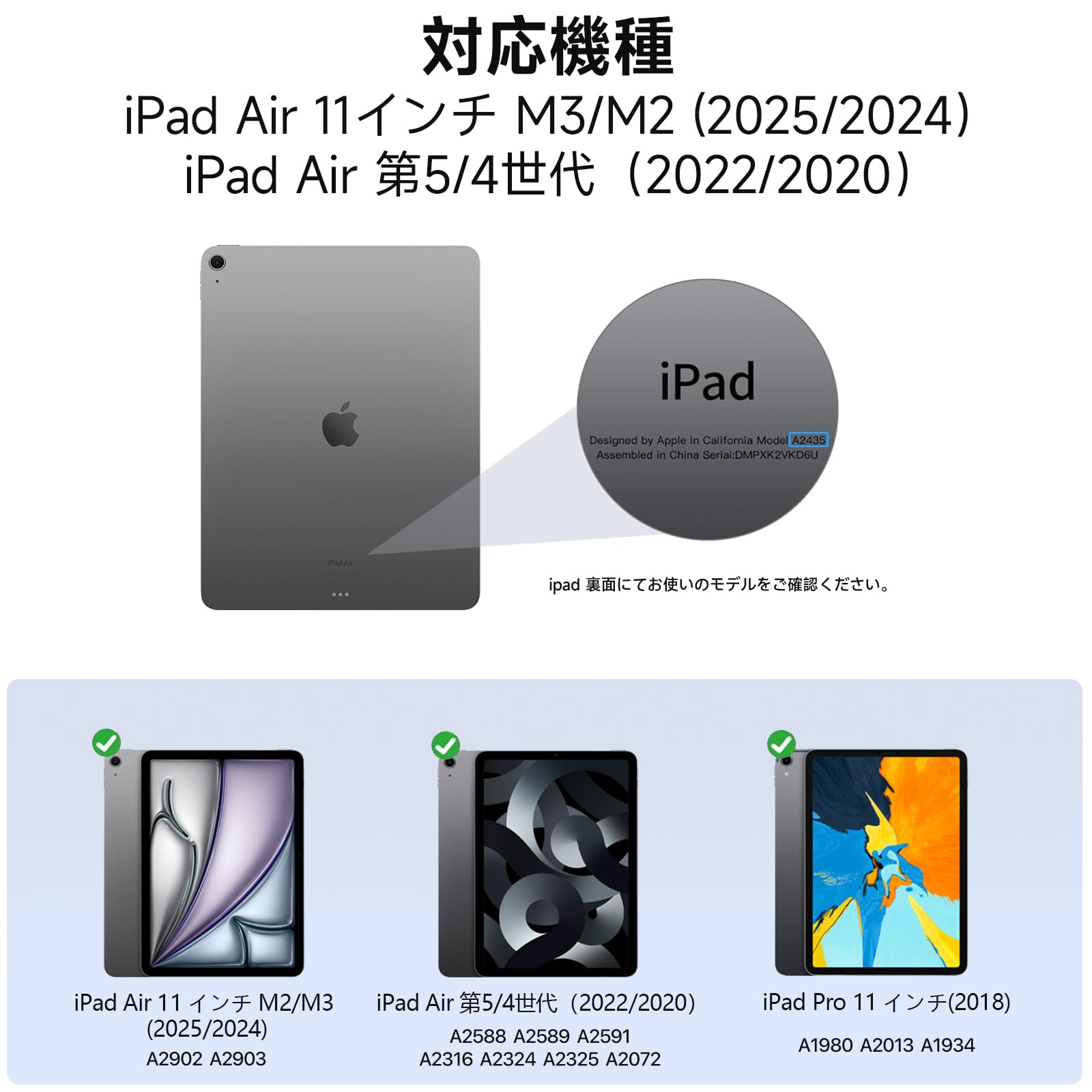 対応デバイス iPad Air 11インチ 2024/2025, iPad Air 第5/4世代 (2022/2020), iPad Pro 11インチ 2018