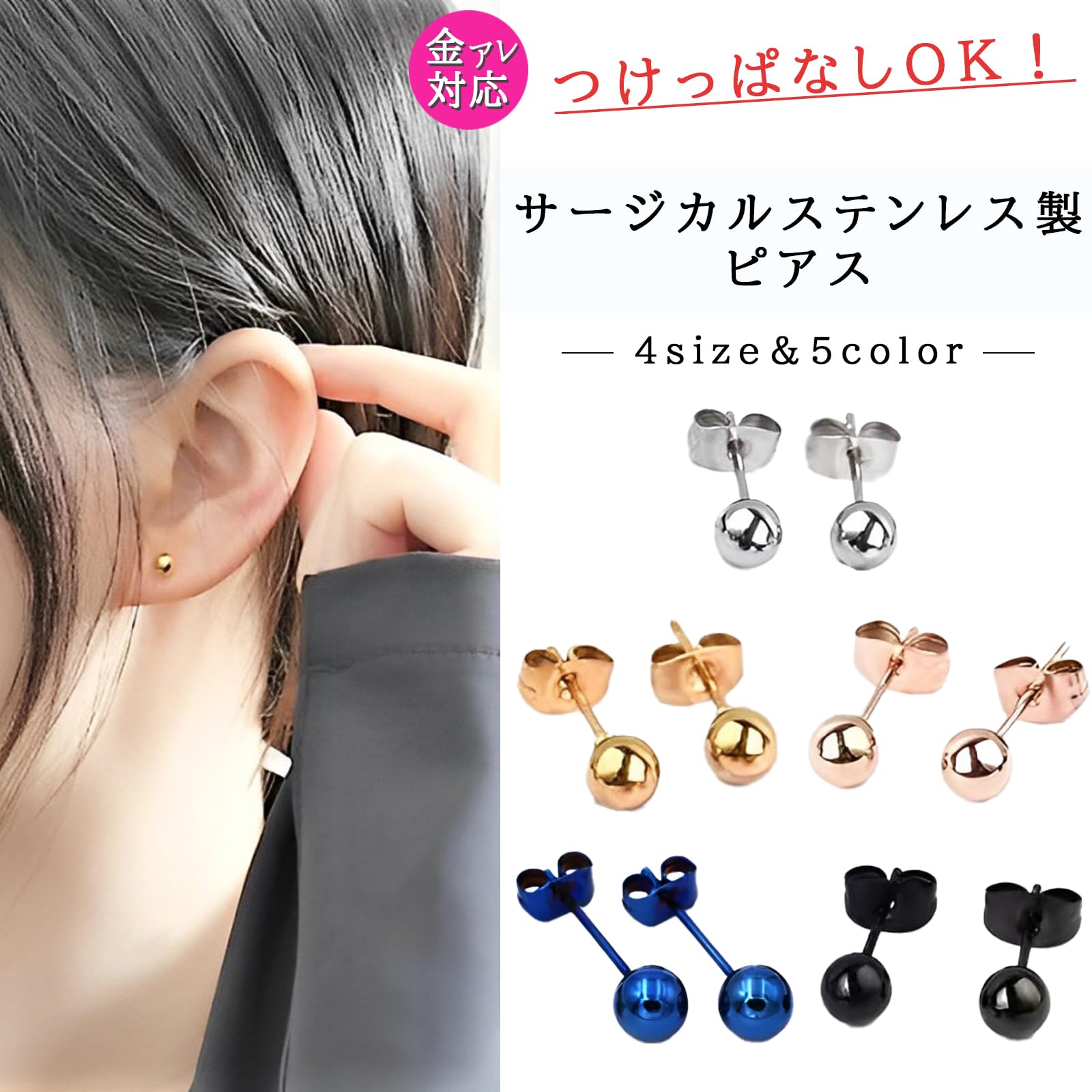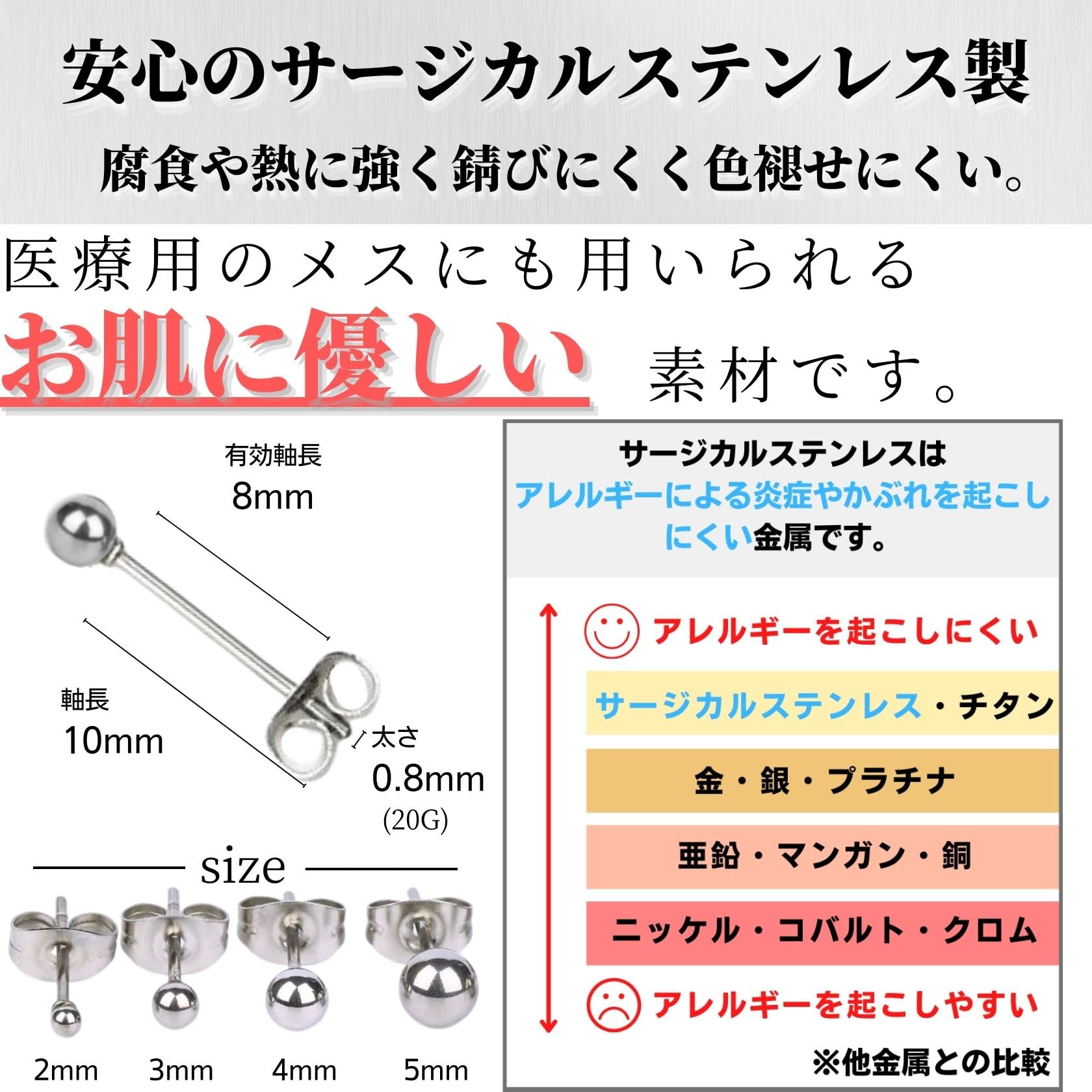 【特価処分】swars ピアス メンズ レディース サージカルステンレス 金属アレルギー対応 丸玉 ボール 両耳用 2個セット (silver 3mm)