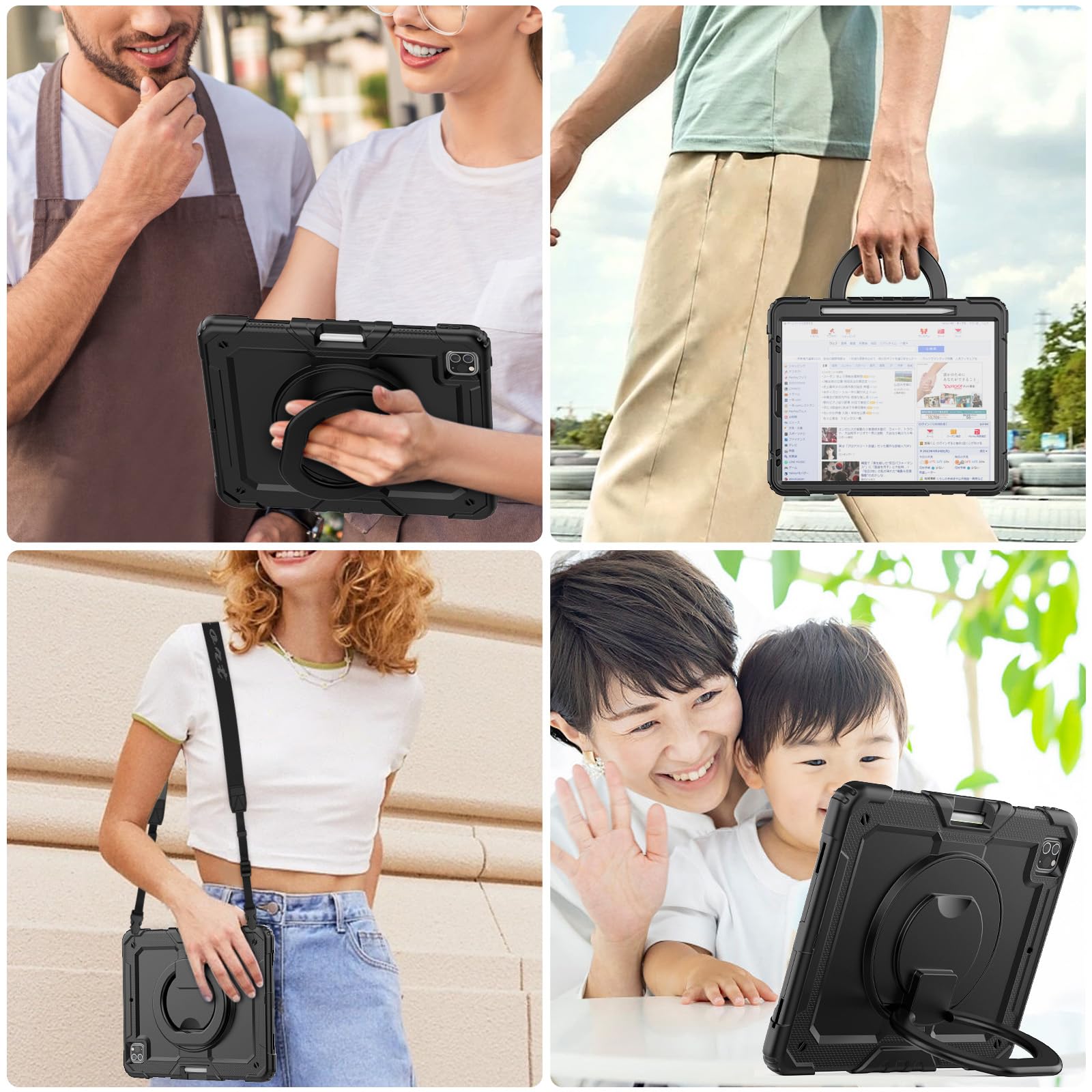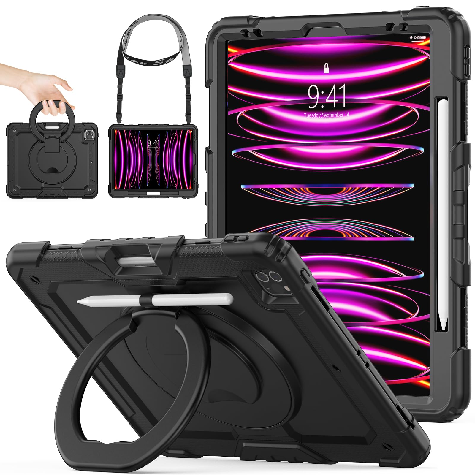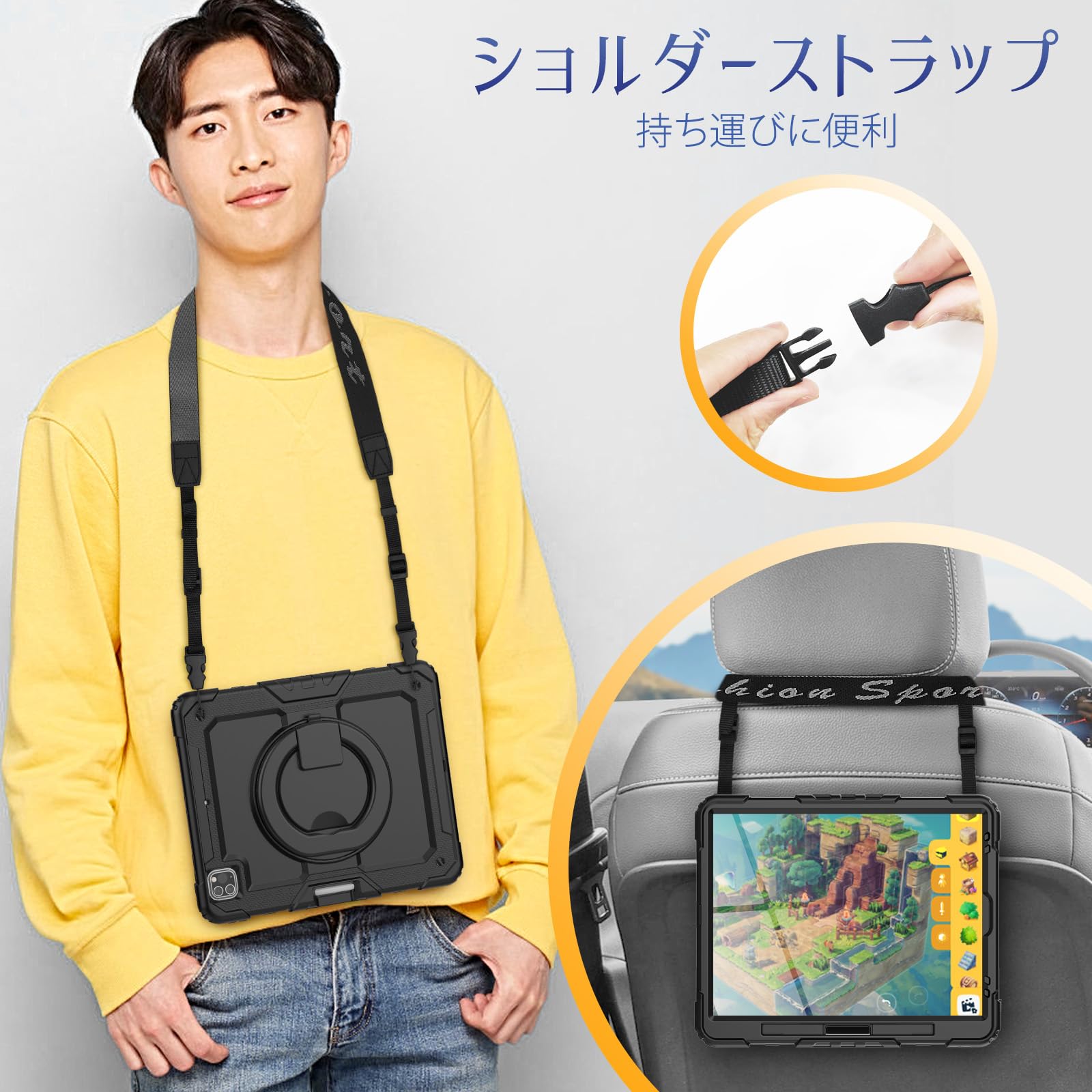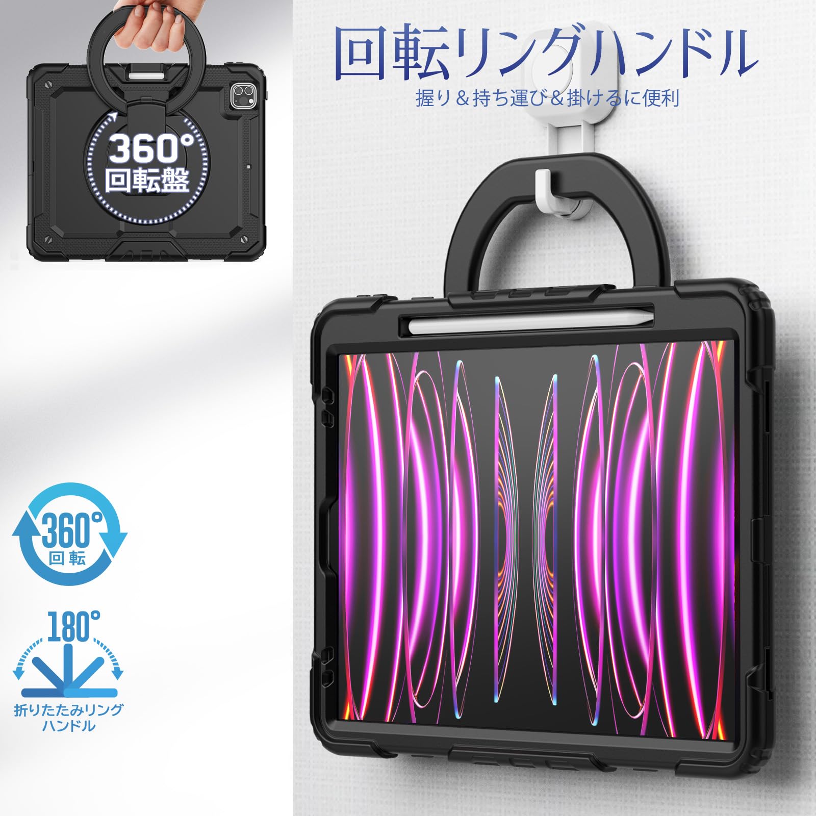 【新着特価】SEYMAC stock iPad 12.9インチiPad Pro 第6/5/4/3世代 ケース リングハンドル耐衝撃ケース ペン収納 ショルダーストラップ フィルム付きフレーム(ブラック)(適格請求書発行事業者)