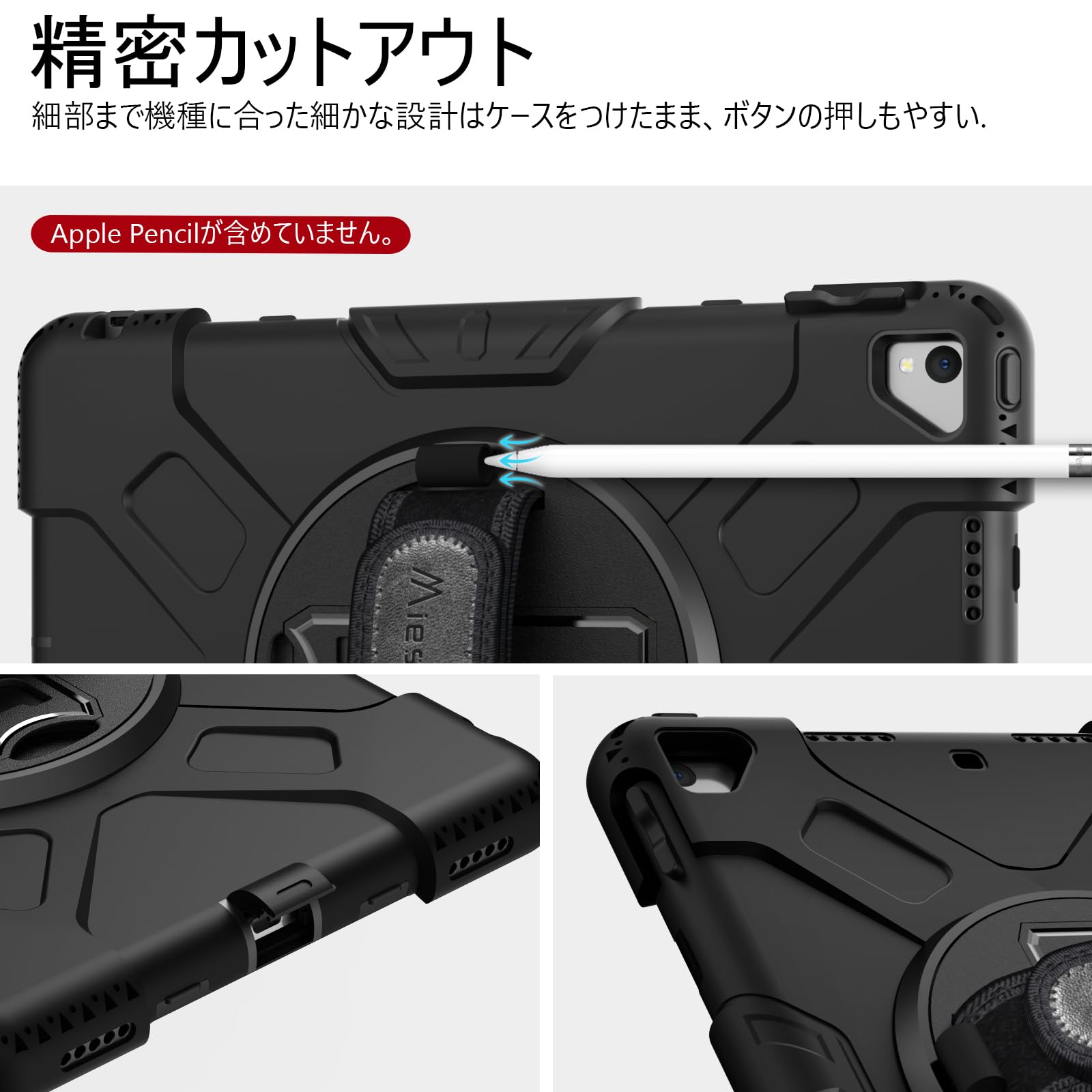 【数量限り】Miesherk ipad 9世代 ケース ipad 10.2インチ 第9/8/7世代(2021/2020/2019) 全身保護ケース 耐衝撃 頑丈 防塵 360°回転ipad スタンド ペン収納 ショルダー/ハンドストラップ 全面保護カバー (ブラック)