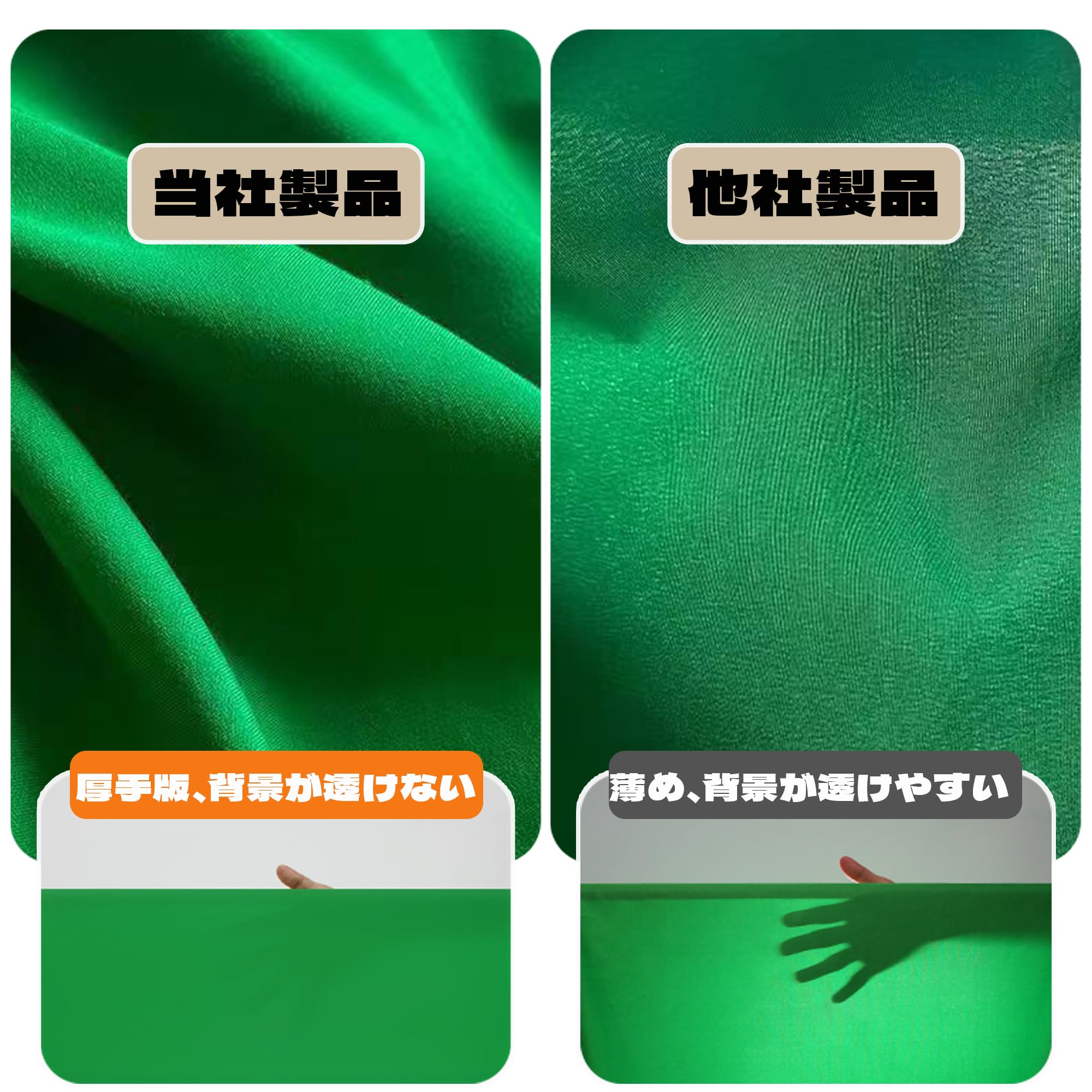 【高密度高品質素材】背景布 撮影用は高密度ポリエステル製で、厚手でドレープ性に優れています。高密度構造により耐久性が高く、シワになりにくい特長があります。不要な光反射を抑え、自然な質感で被写体を引き立てます。※製造工程で折り畳まれるため、初回ご使用前にはアイロンがけをおすすめします。