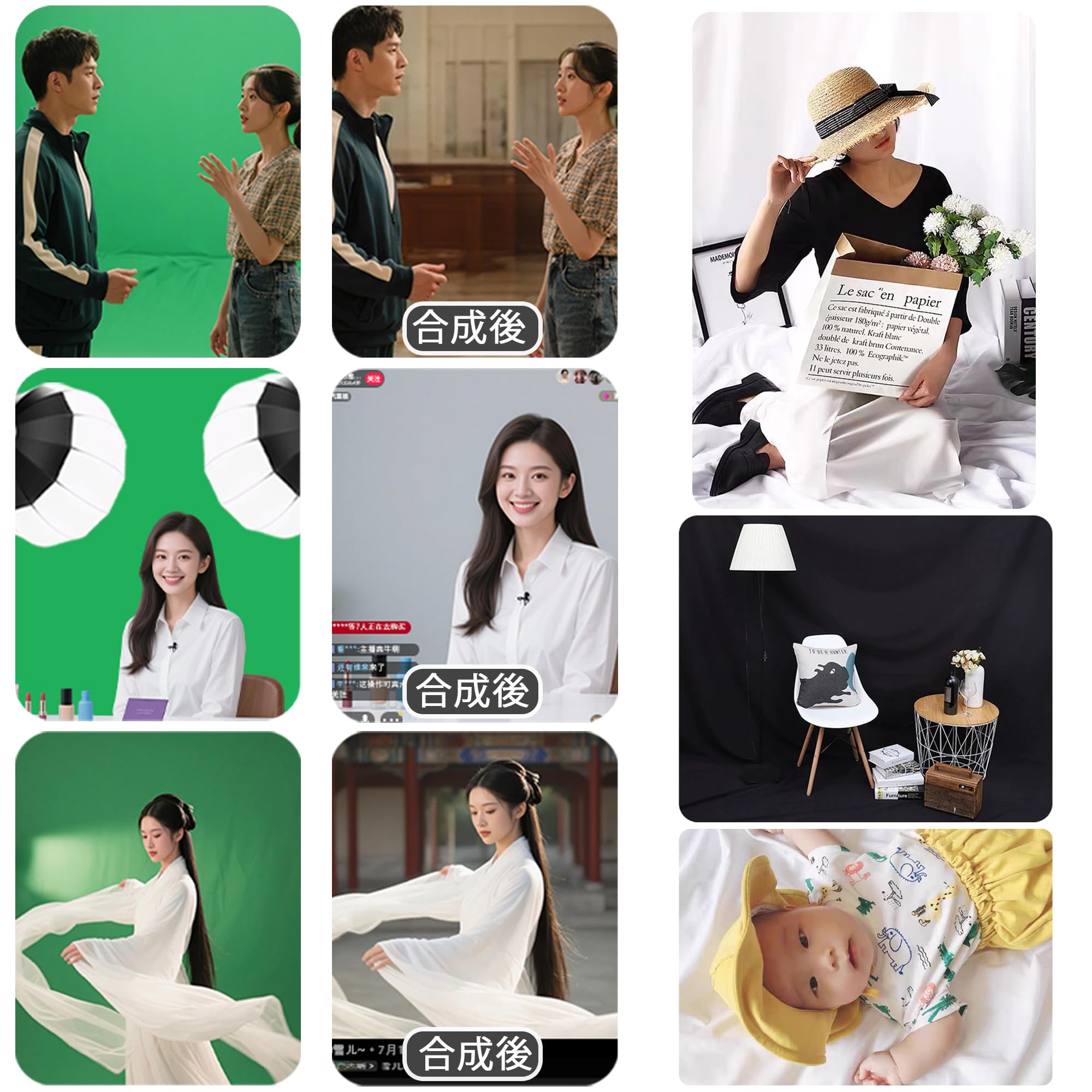 【多様な用途】撮影 白布は、証明写真撮影、商品撮影、ハンドメイドアクセサリーの撮影、飲食店、フード、ジュエリー、メイクアップ、おもちゃ、動画、小物など、幅広いシーンでご利用いただけます。