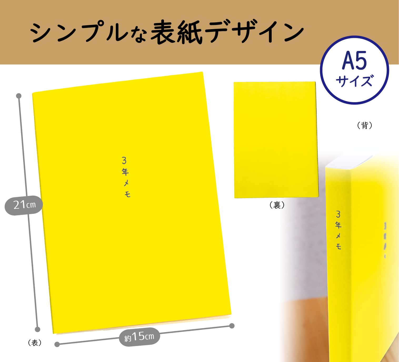 ノートライフ 3年メモ 日記帳 a5 (21cm×15cm)日本製 3年日記 ソフトカバー 日付あり (いつからでも始められる イエロー)