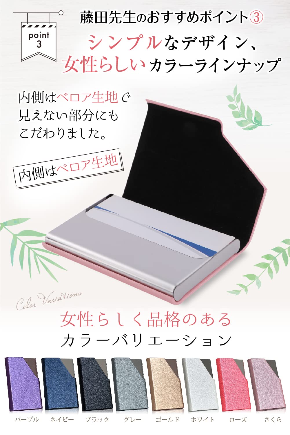 ? 好印象のポイントは「上品」「清潔」「控えめ」。当製品はシンプルなデザイン、エレガントな色合いに機能性を兼ね備えた女性の魅力を最大限に引き出せる名刺入れです。