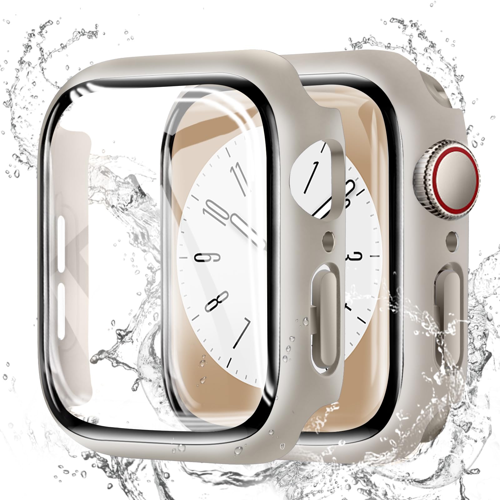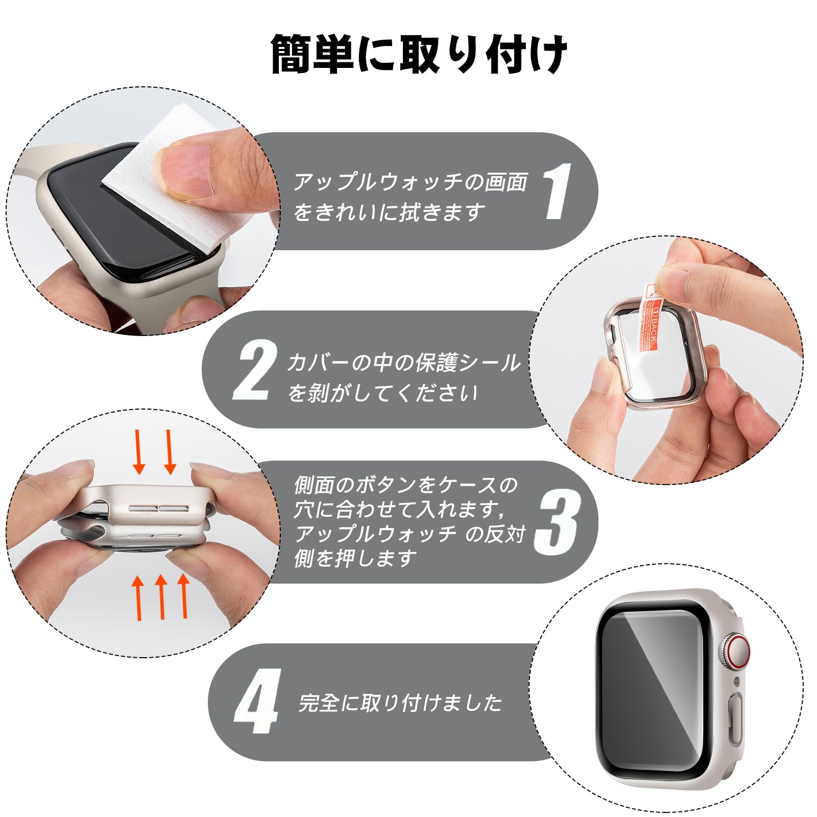 for Apple Watch ケース Series 11/10/9/8/7/SE3/SE2/SE/6/5/4 40mm 超薄型 for アップルウォッチ カバー 防水 PC素材 硬度9H強化ガラス 高透過率 指紋防止 耐衝撃 全面保護 for Apple Watch カバー スターライト