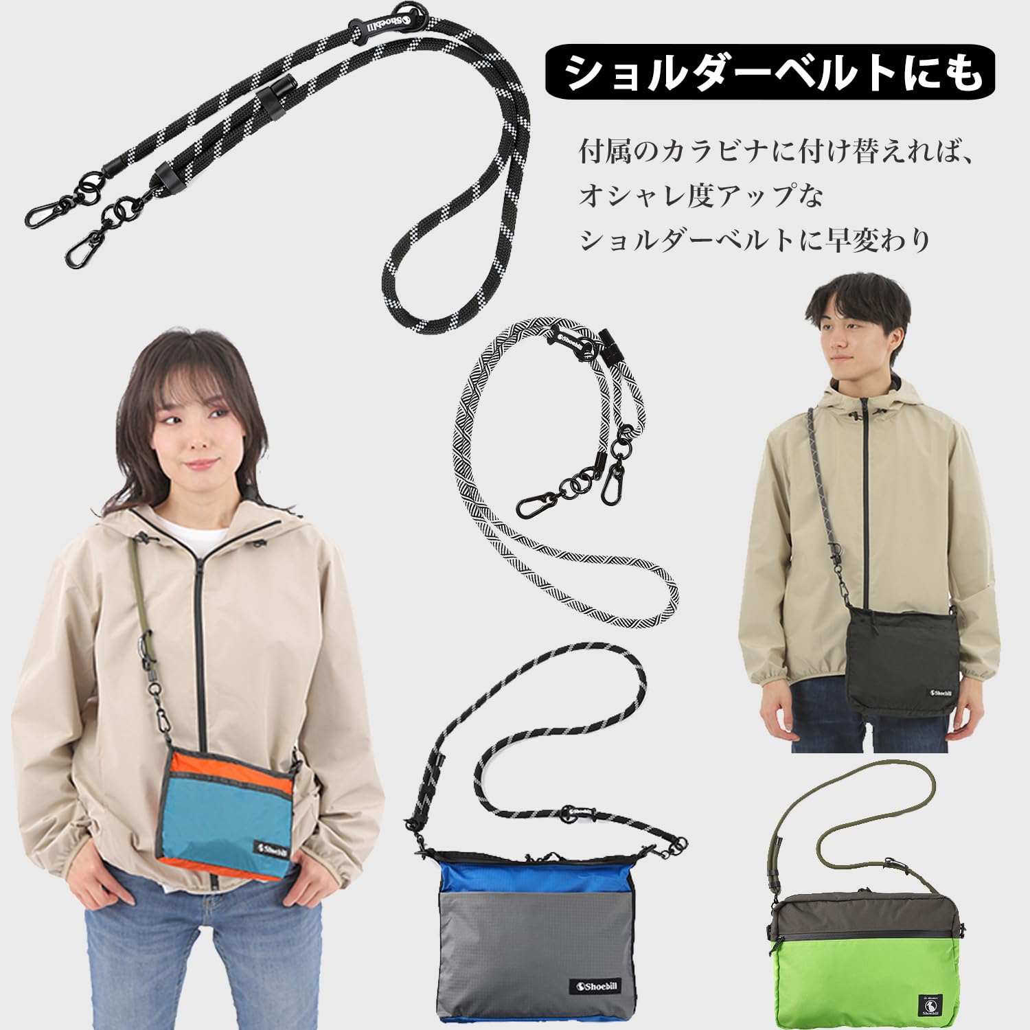 ? 【アウトドアにも映えるデザイン】 高強度ロープを使用したスタイリッシュなデザイン。登山や旅行、フェスなど、どんなシーンでも使えます。