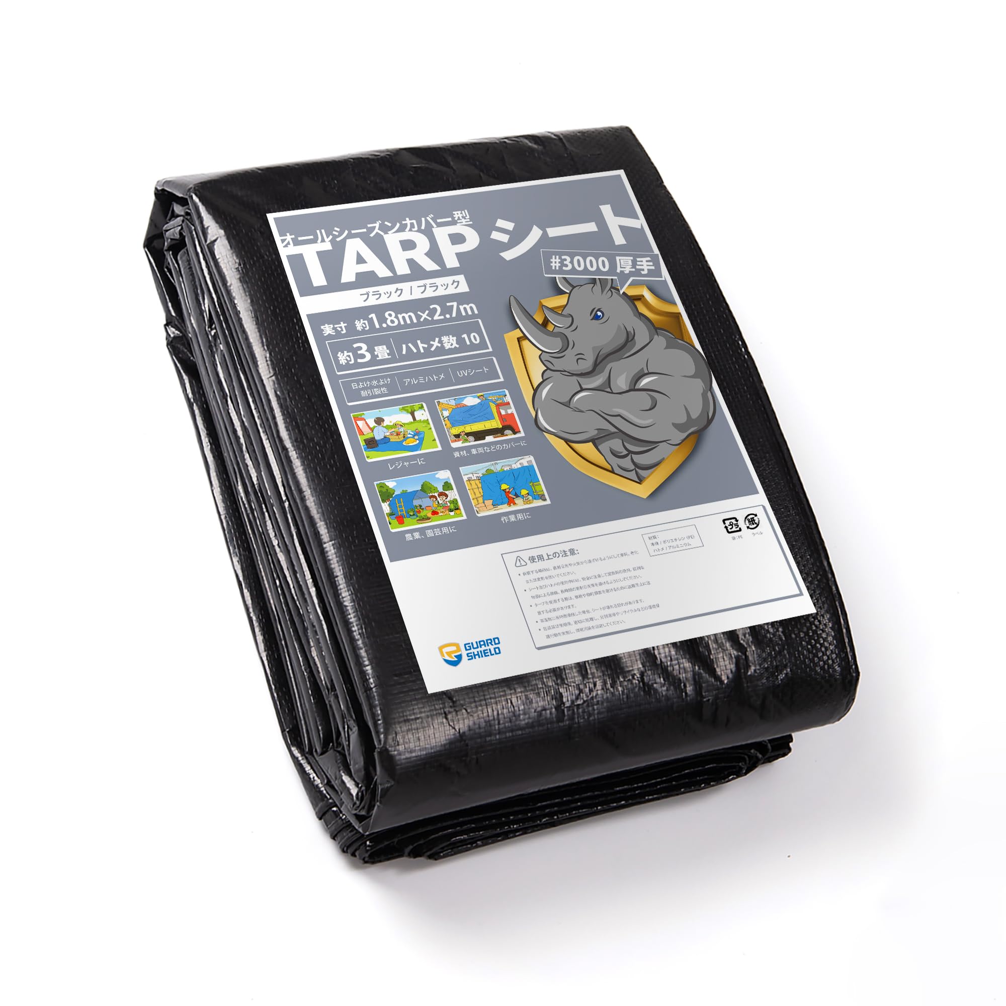 【数量限り】GUARD SHIELD ブラックシート #3000 厚手 ブルーシート 防水シート ハトメ付き 屋根 防水屋外 1.8mx2.7m 約3畳 UV ターポリン