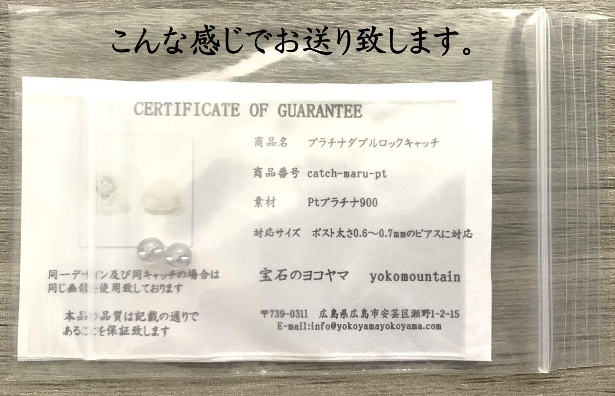 キャッチは、ゴールドにシリコンでカバーしたダブルロック式です! プラチナ900、3種類のゴールド(ホワイト・イエロー・ピンク)から、お手持ちのピアスに合った色のものをお選び下さいませ。 デザインも丸・フィット・ハート・星、4つのデザインからお選び下さいませ。 ●素材・使用地金:Ptプラチナ900・K18ホワイトゴールド・K18イエローゴールド・K18ピンクゴールド+シリコン ●サイズ(縦×横×厚み): 丸:約5.5mm×5.5mm×4mm フィット:約5.5mm×5.5mm×4.2mm 星:約5.5mm×5.5mm×2.5mm ハート:約4.5mm×5.5mm×3.3mm ●ピアスポスト太さ0.6〜0.7mmのピアスに対応のキャッチになります。 ポストの太さが0.7mmを超えるピアスにご使用された場合、キャッチが壊れる場合がございます。 必ず、お手持ちのピアスのポストの太さをご確認の上、お買い上げ頂きますようお願い致します。 ●ご注文数量1で2個1ペア分の販売になります。