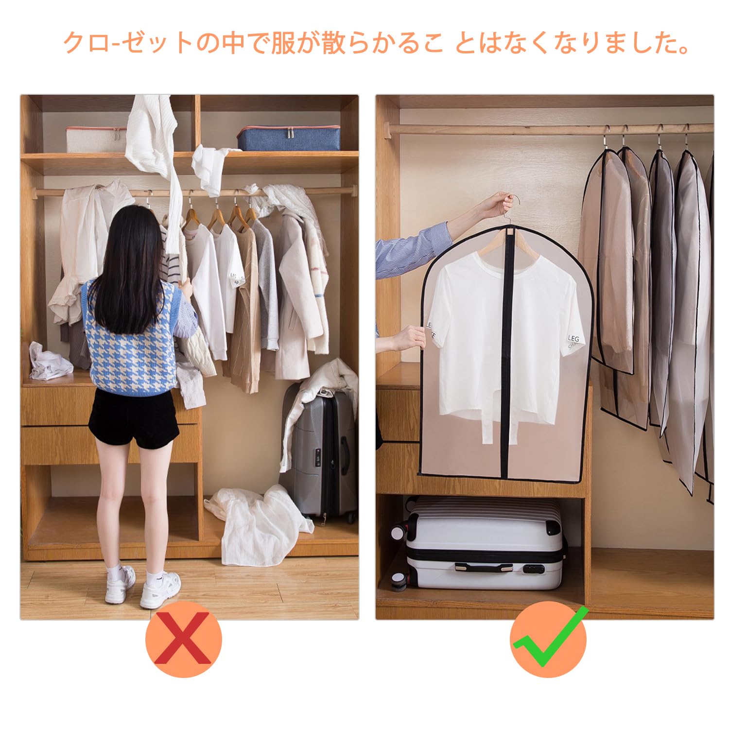 【新着特価】衣類 防塵カバー【60x100cm 6枚組】吊るせる衣類用ダストバッグ コートカバー 湿気取り 防カビ ダウンジャケット Tシャツ 半袖 スカート パンツ収納袋 洗える 半透明式 繰り返す使用可能 折り畳み可能 (ブラック)