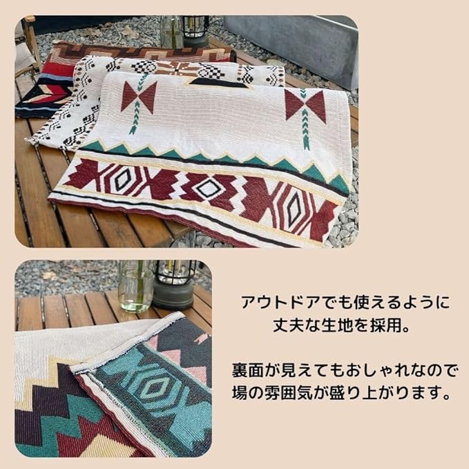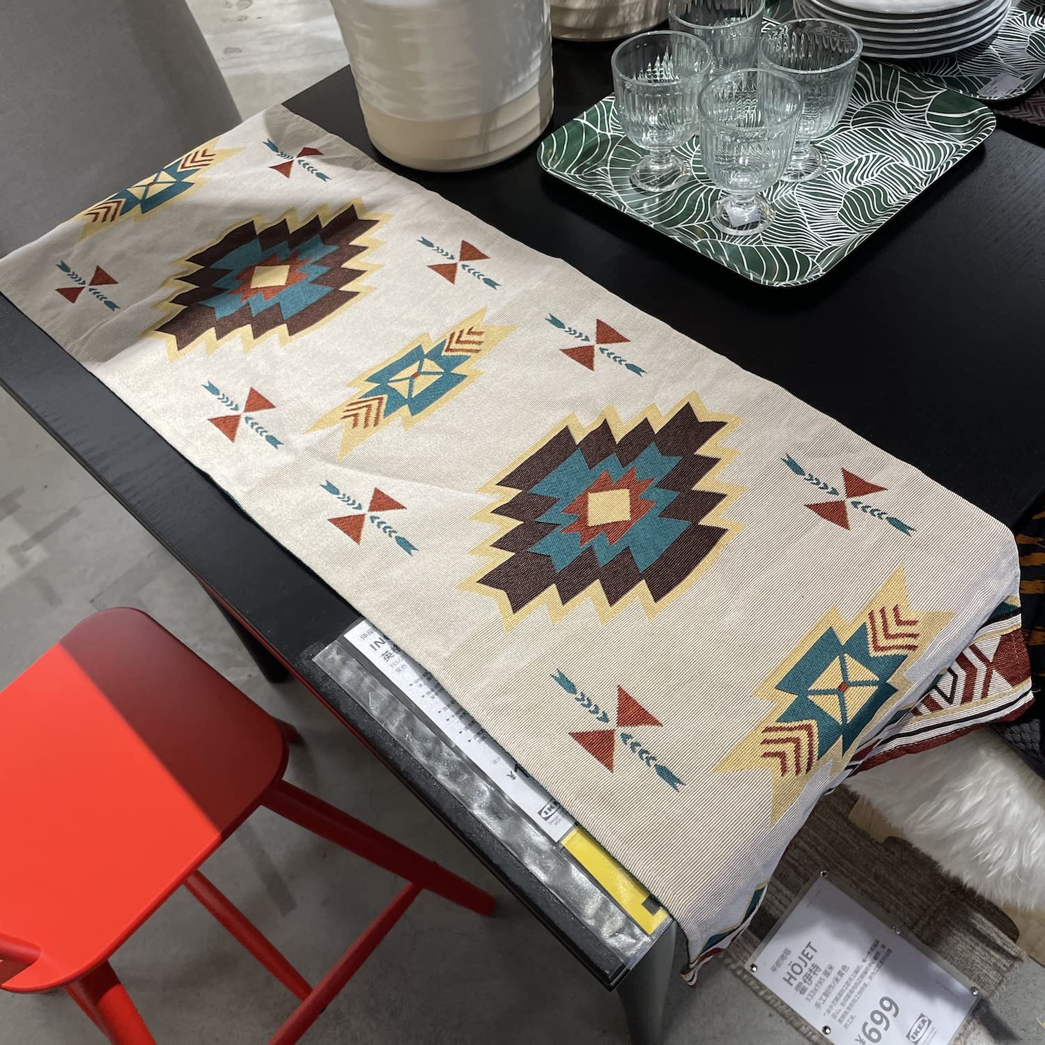 テーブルランナー キリム柄 オルテガ柄 エスニック キャンプ アウトドア ピクニック プレイスマット おしゃれ 35X120cm,