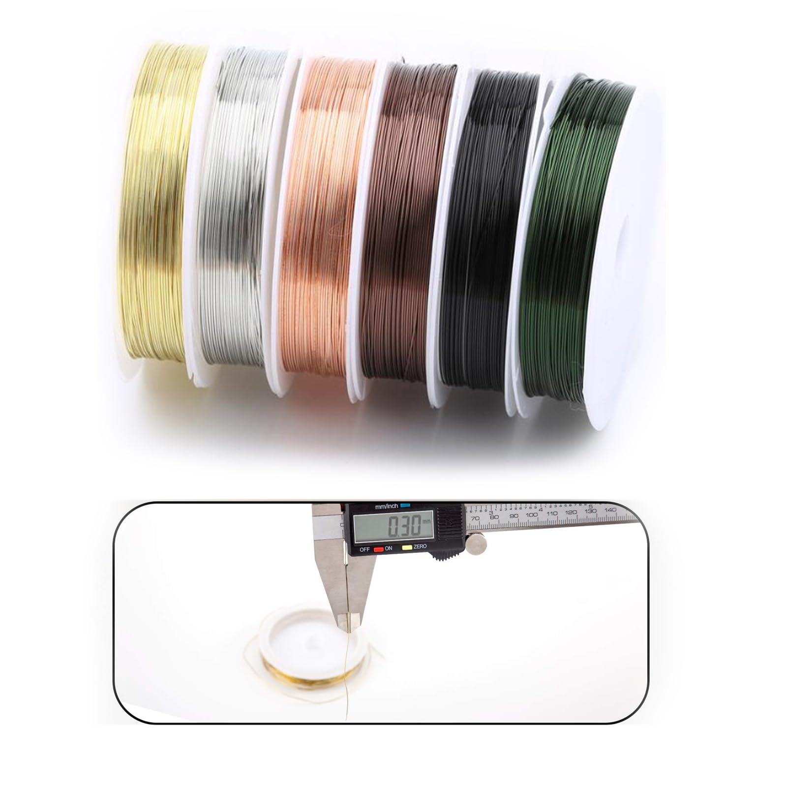 【在庫のみ】アクセサリーワイヤー 6色6巻入 0.3mm ゴールド/シルバー/銅色/ブラック/カレー色/グリーン クラフト銅線ア クセサリ用ワイヤー 手芸用ワイヤー ジュエリー作り DIY手芸素材