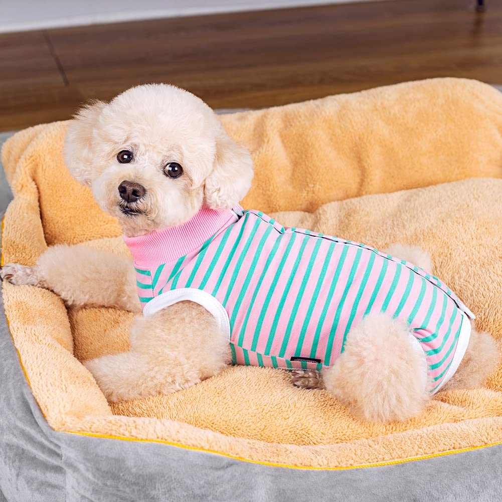 PET 術後服 犬服 猫 犬術後服 術後ウェア 術後カバー服 保護服 介護服 避妊 離乳 傷口保護 皮膚病 小型犬 中型犬(ピンク+グリーン XS)