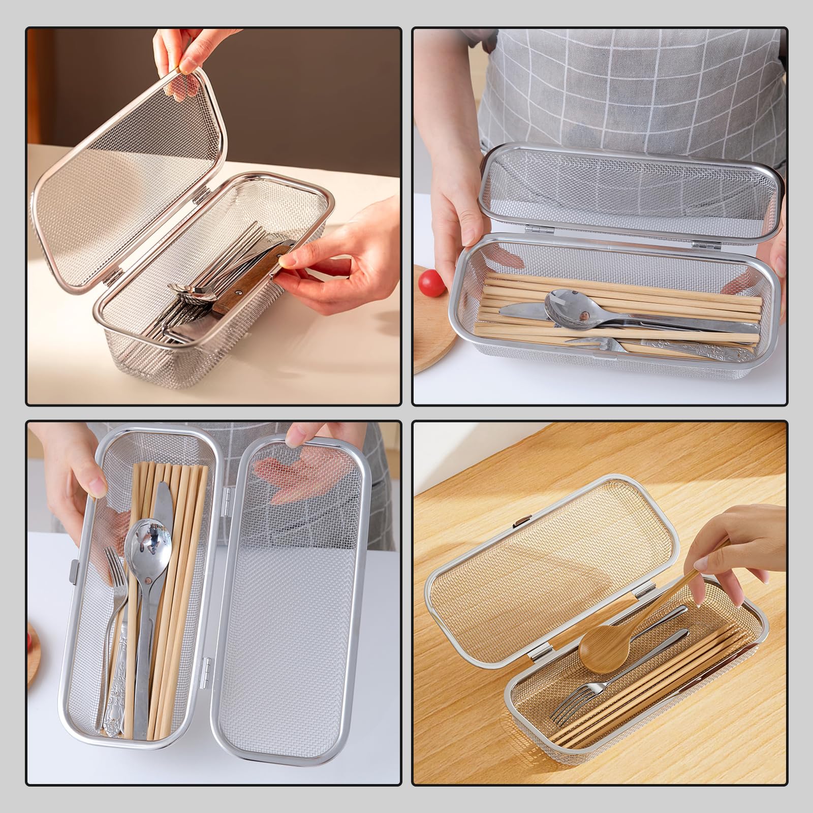 【カトラリーの整理に最適】スプーンやフォーク、箸などを種類別に整理できる収納バスケット。キッチンの収納力を高め、探す手間を省き、調理や配膳の効率もアップします。