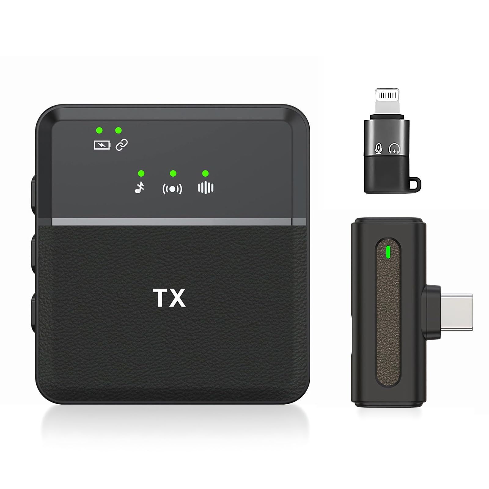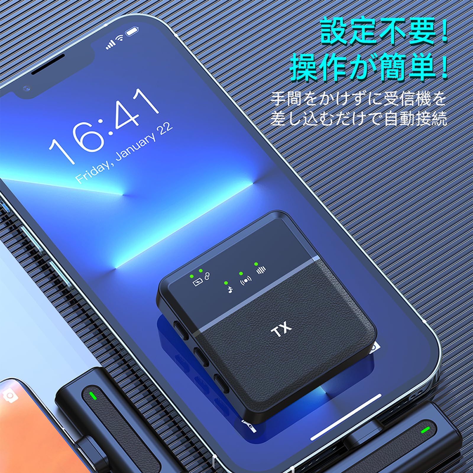 ??【自動ペアリング&ノイズリダクション機能搭載】このマイクは内蔵の最適化されたアンテナ設計により、放送およびテレビグレードの周波数範囲の接続距離と安定した信号を備えた 2.4G ワイヤ-レスネットワークが実現します。内蔵するDSPチップによってノイズの発生を抑え、クリアな音声収録を可能にします。送信機と受信機は自動的に無線接続され、専用アプリやBlue-toothは必要ありません。また、マイクがスマホと一体化してコンパクトにまとまるため、携帯性にも優れています。