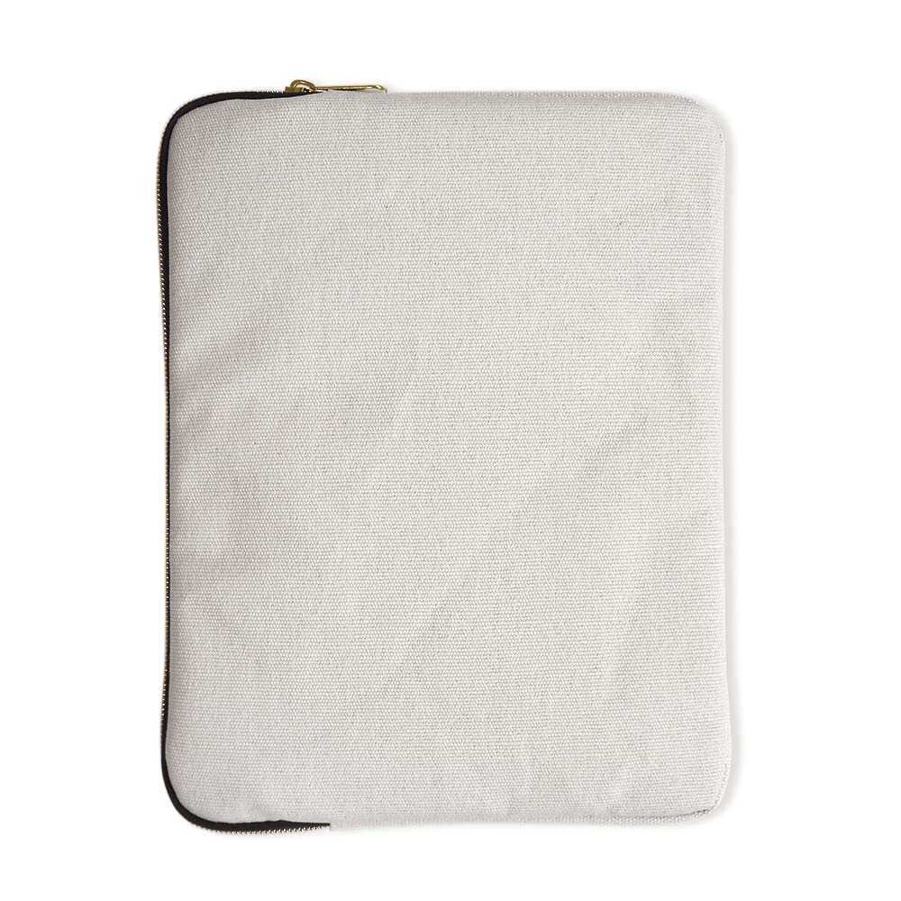 丈夫な帆布素材を使用、裏側にもクッション素材入りでタブレットケースとしても使えます