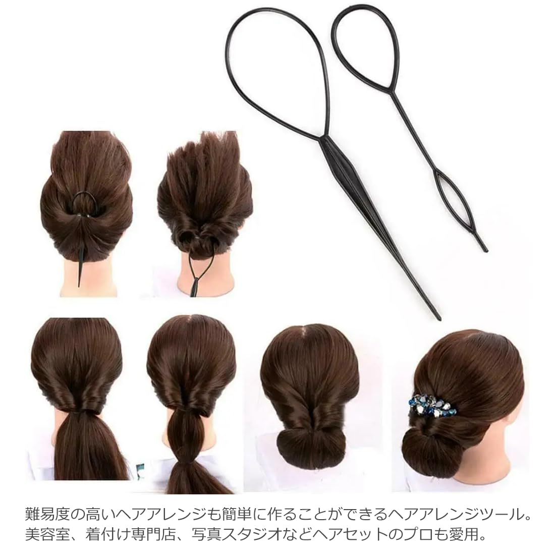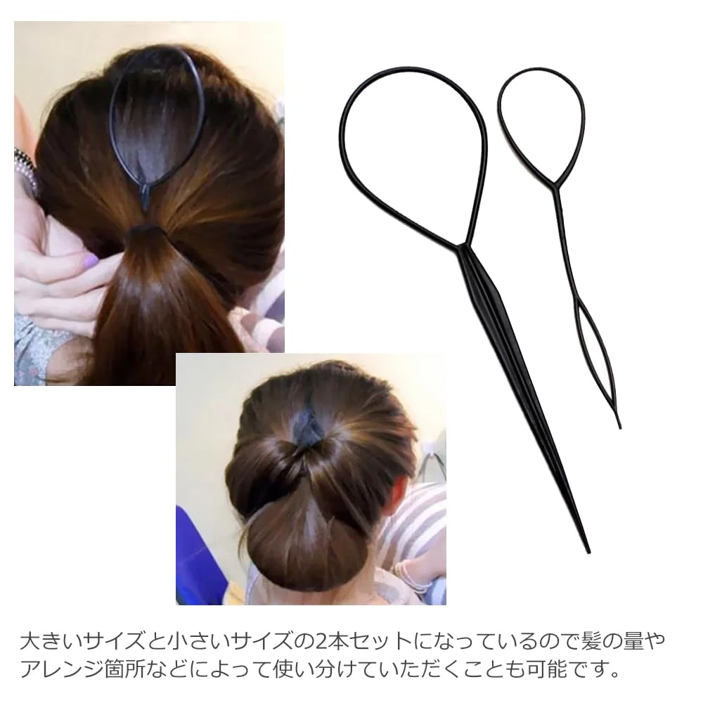 【数量限り】オーディオファン ヘアアレンジスティック ヘアスタイリングツール 2タイプ お団子 髪造形 ヘアデザイン くるりんぱ 多機能 プロ 初心者 サロン 美容院 レディース 家庭用 業務用 大・小 各1点入り ブラック 4セット