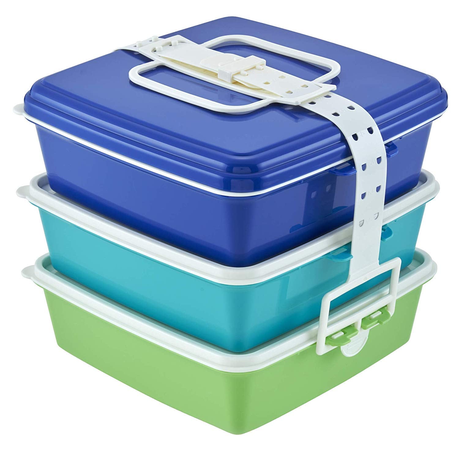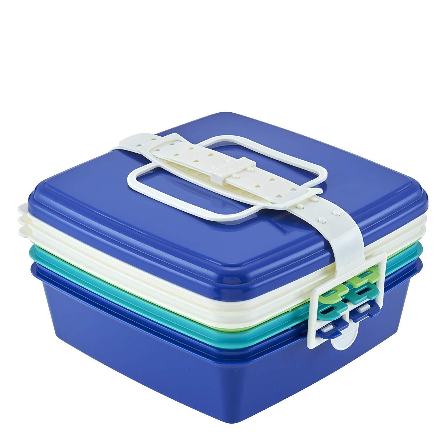 パルマート(Palmart) 大型弁当箱 blue 大 スタック式ピクニックケース角型3段 Colors(カラーズ) 4066 サイズ:24.9×22.7×H22cm 材質:本体・フタ・仕切りケース/ポリプロピレン、中フタ・ベルト/ポリエチレン 生産国:日本 容量:2.5L×3 使用しない時はコンパクト収納が可能 2段でも3段でも用途に合わせて使用可能 調節ベルト&持ち手付き 仕切りケース4個付き