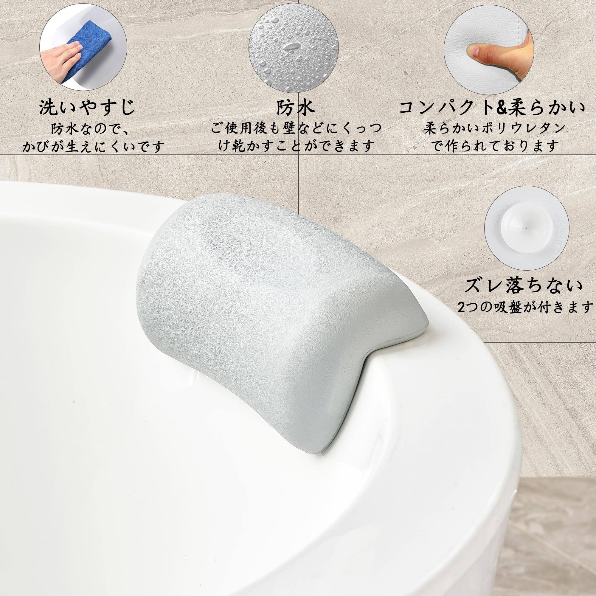 【特価処分】バスピロー お風呂 まくら お風呂枕 吸盤付き バスタブ グッズ バスまくら 防水 滑り止め カビない バス枕 お風呂グッズ (グレー)