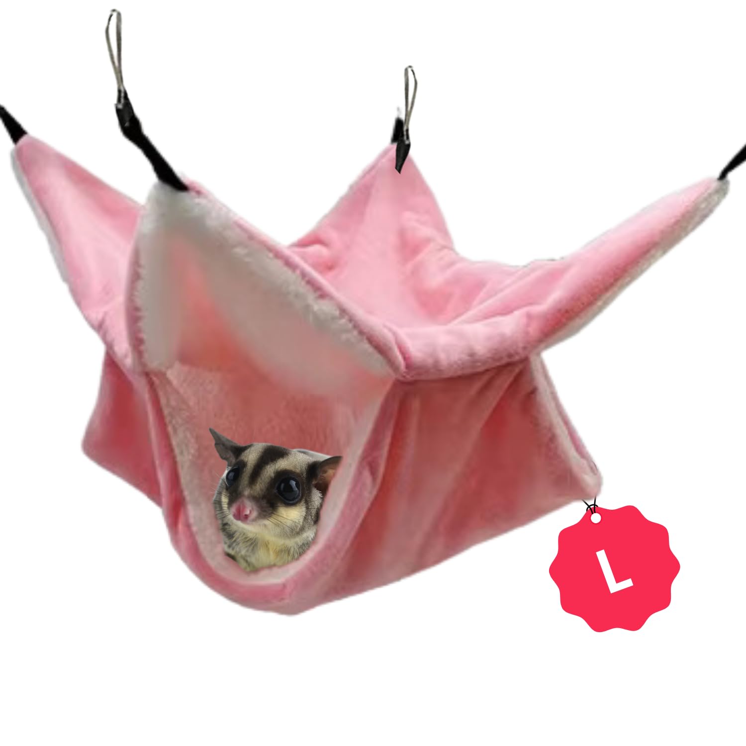 【人気】ハンモック 【ピンク】 【Lサイズ 30×30㎝】 寝床 ブランコ 隠れ家 遊び場 ベッド ケージ 吊り下げ フック 金具付 小動物用 保温対策