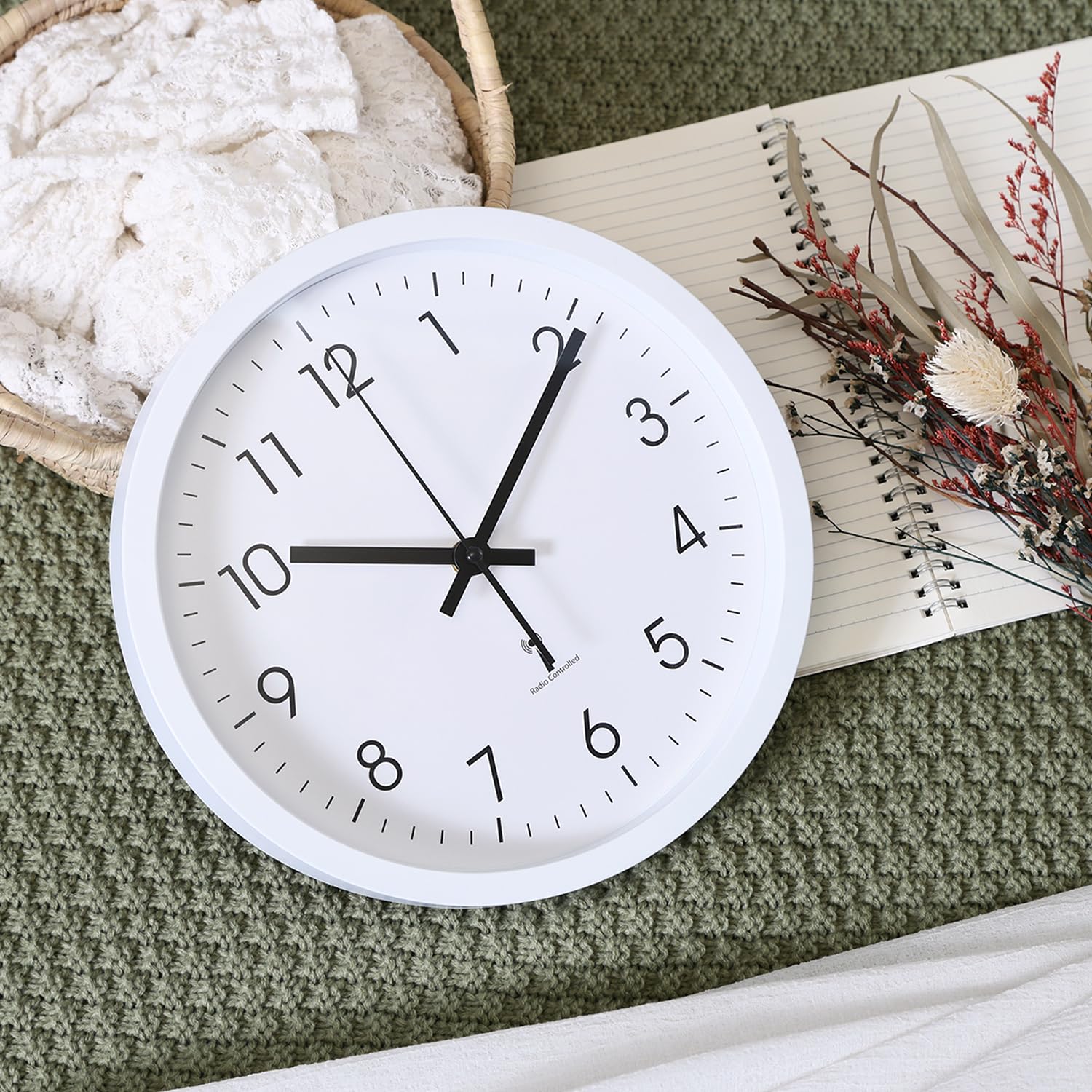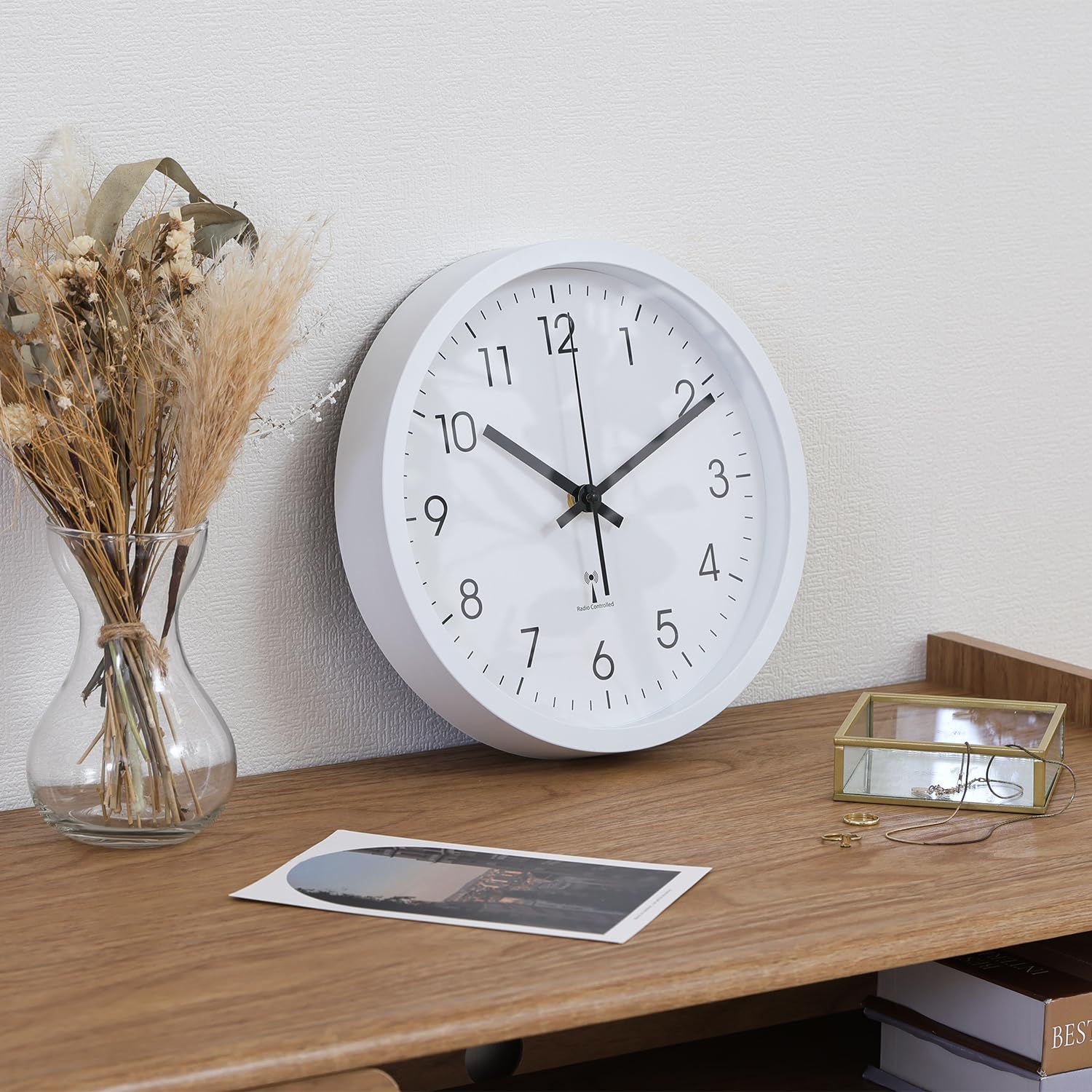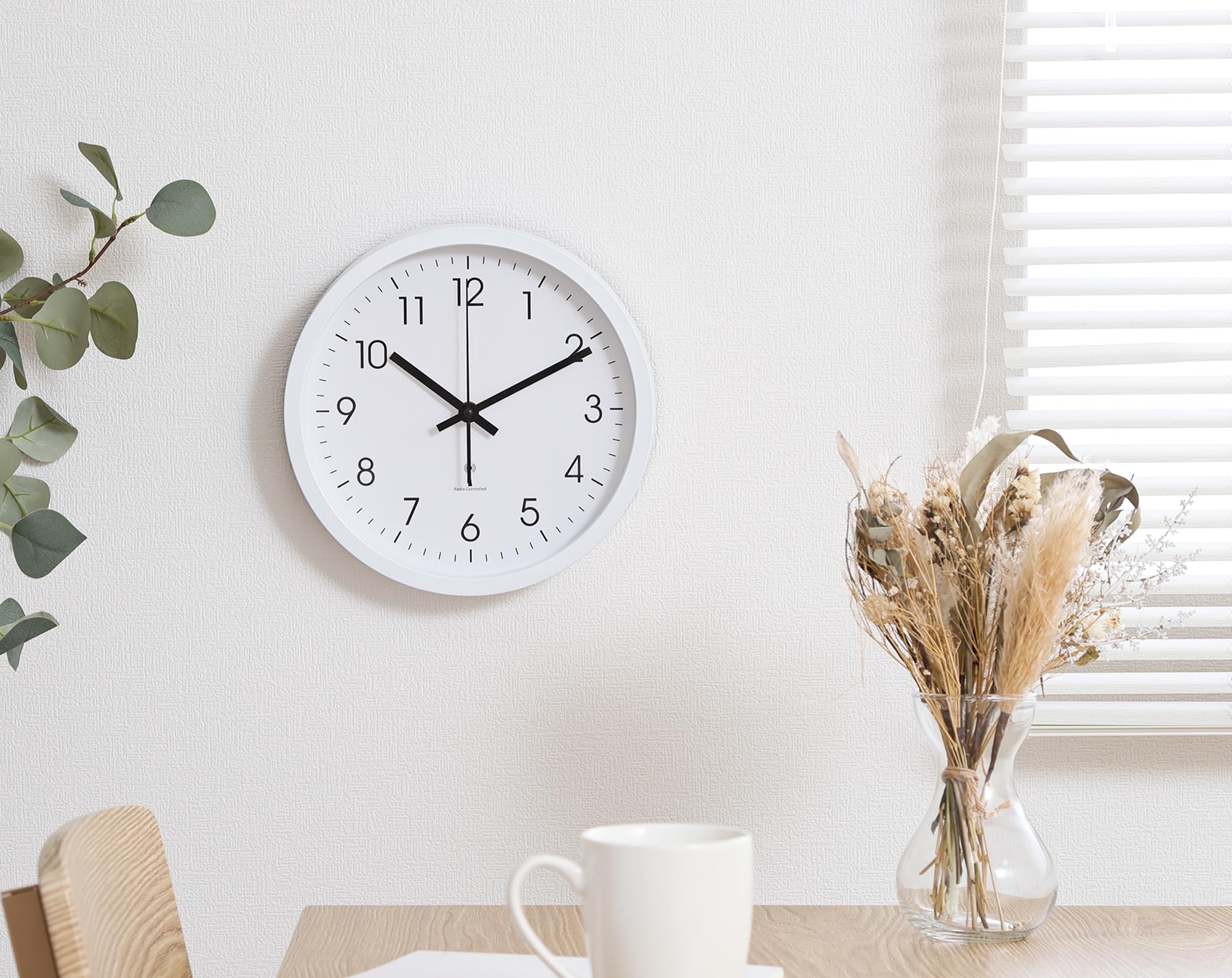 【努力特価】不二貿易 壁掛け電波時計 静音 アナログ 直径25cm ホワイト 70476