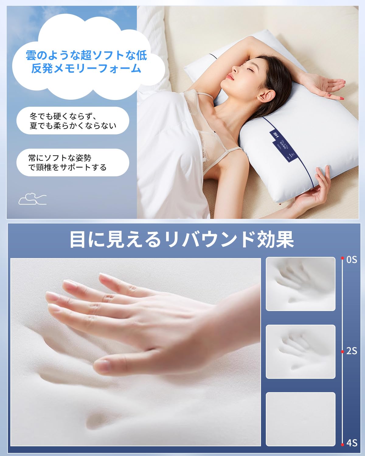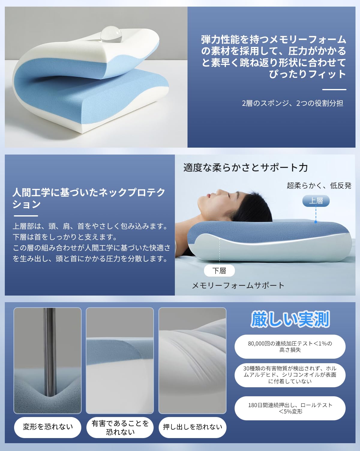 ?【ぐっすり眠れる枕】2層構造の枕で自分に合った快適な寝心地を追求できます。この枕は柔軟性とサポート力を兼ね備え、体の曲線にやさしくフィットし、体圧を分散して負担を軽減します。同時に、身体の重みをしっかりと支え、睡眠中の適切な寝姿勢を維持し、快適な睡眠をサポートします。