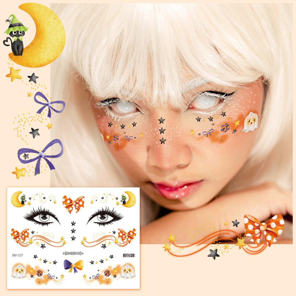 ハロウィンデサイン:ハロウィンの仮装に使えるフェイスタトゥーシールです。手軽に楽しめるためるだけでなく、シンプルな服装も、タトゥーがあるだけでおしゃれに演出できます。