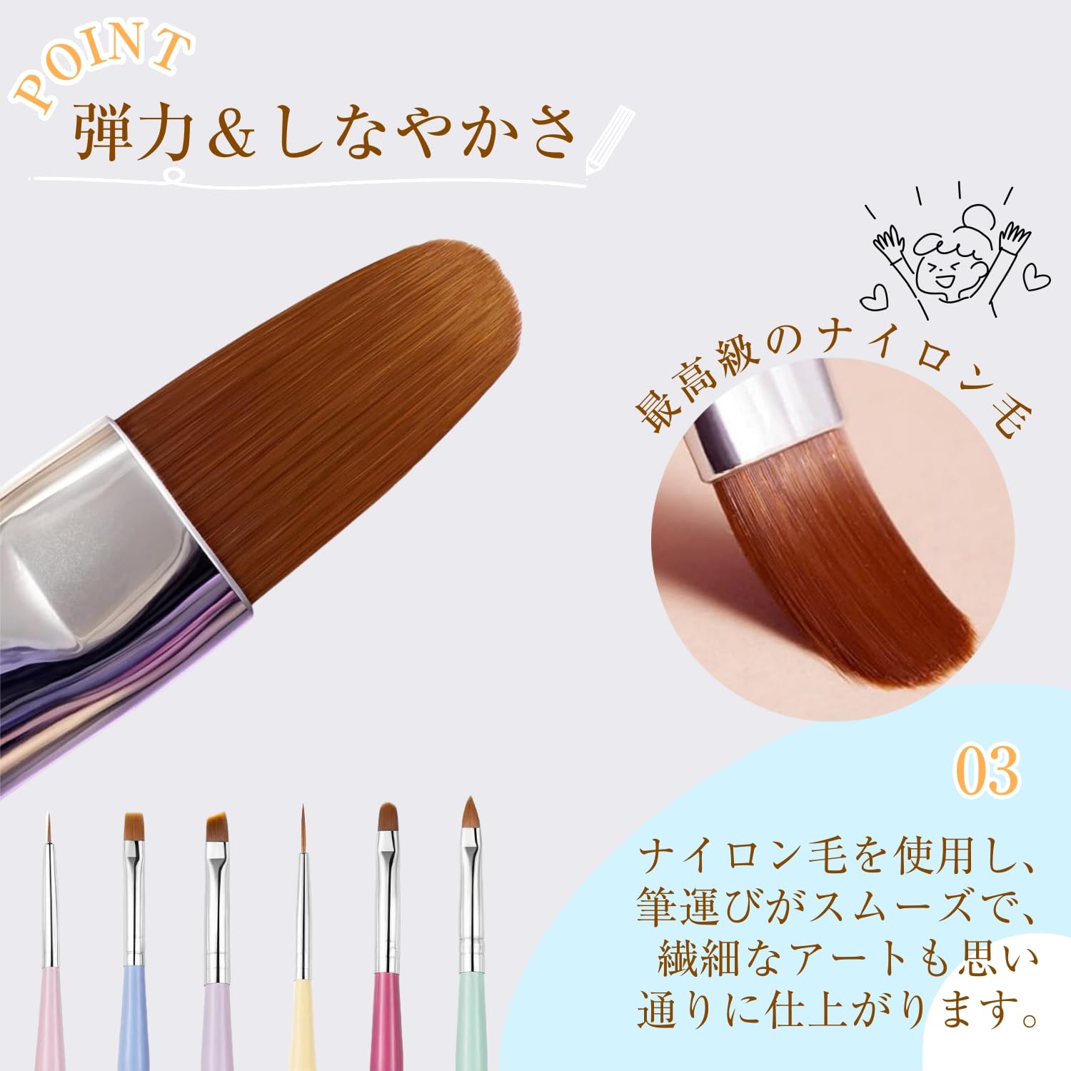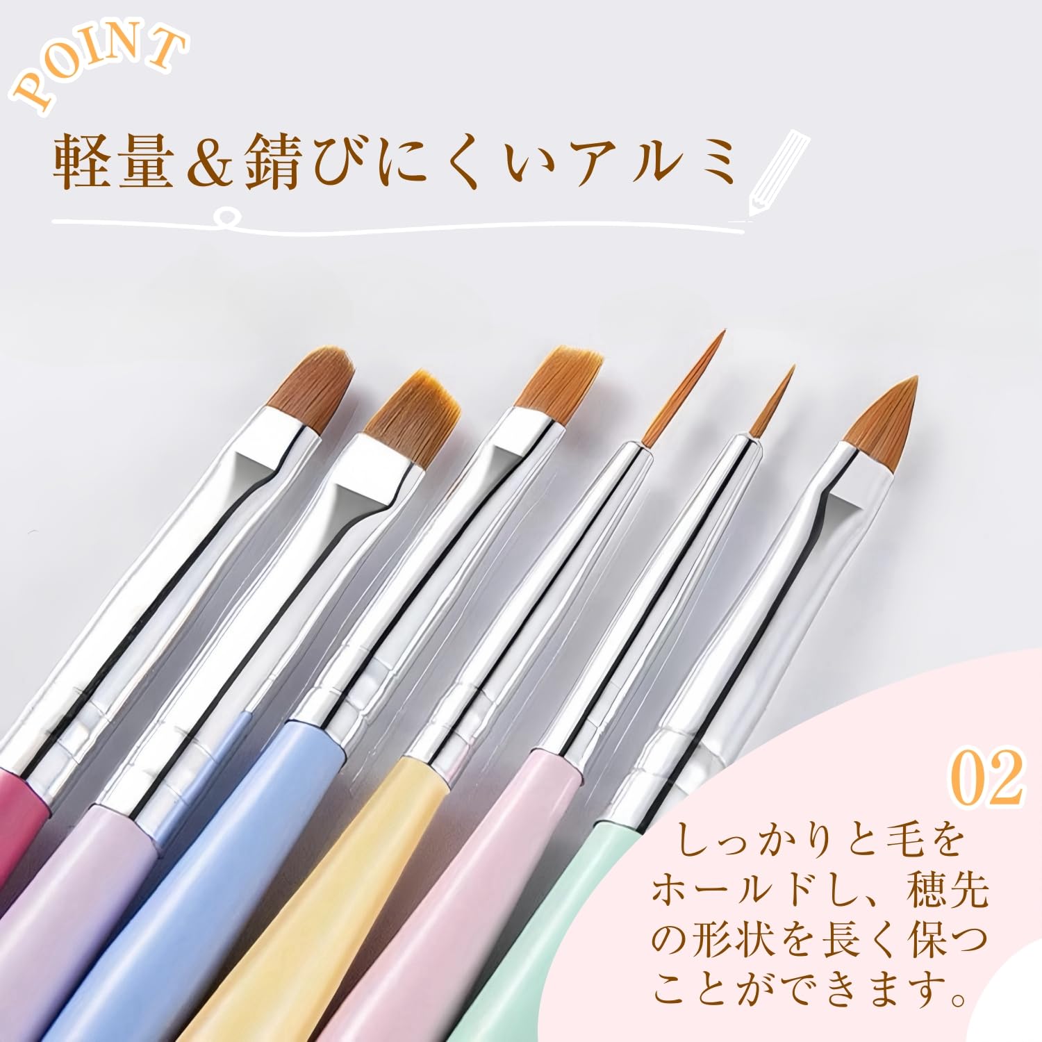 ????【高品質ブラシ】ジェルネイルを塗るための専用ブラシセットです。ブラシは柔軟なファイバーを使用しており、スムーズな創作を実現し、ジェルが均一に塗れますさらに、毛抜け防止用のチューブが付属しており、各ブラシの毛をしっかり固定します。。デザインやアートに必要な細かい作業もスムーズに行え、プロフェッショナルな仕上がりが自宅で簡単に実現できます。