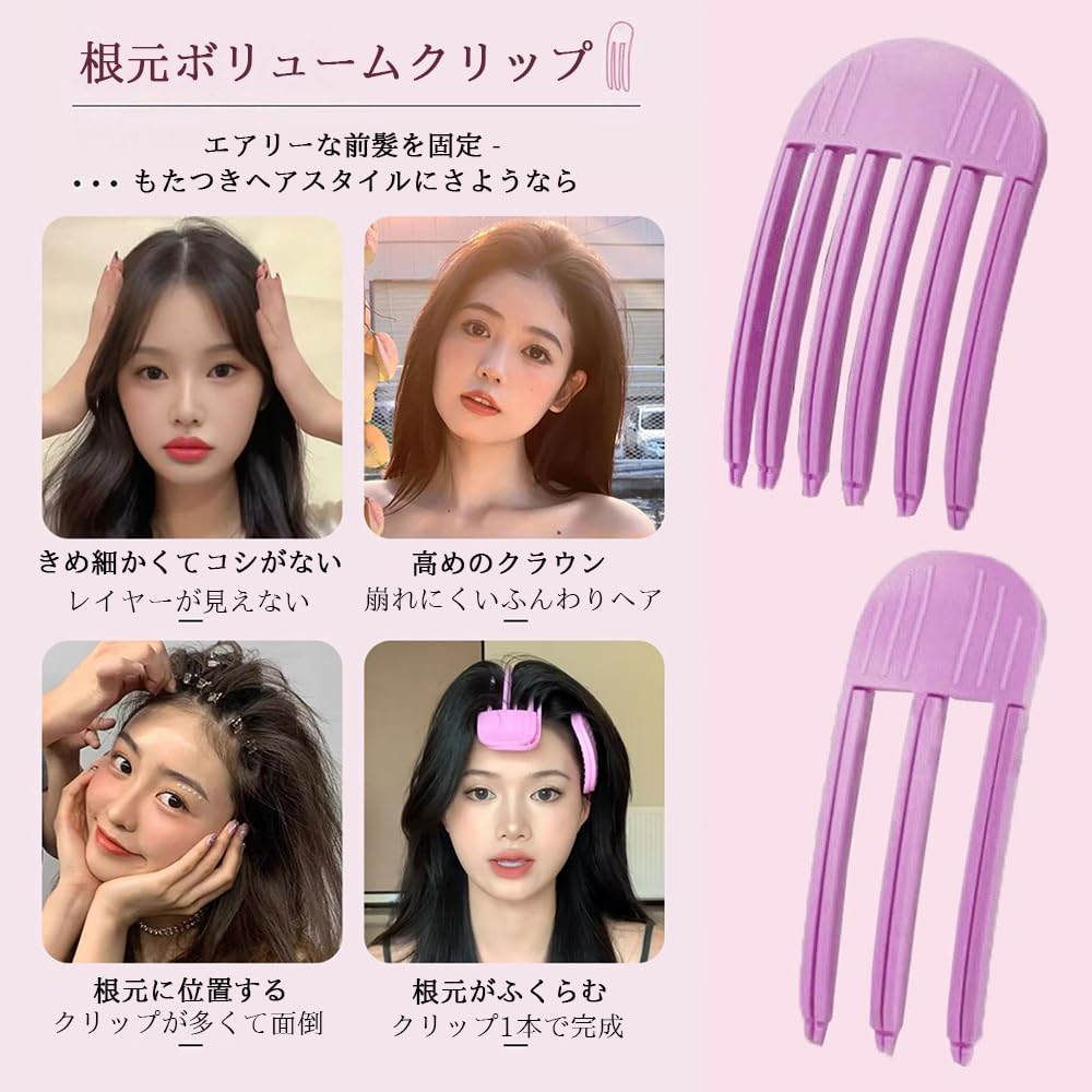 根元立ち上げクリップ 前髪たちあげクリップ ヘアカーラー2本セット ヘアピン ルート 巻き髪 固定額 ふんわり 初心者 韓国風 (青)