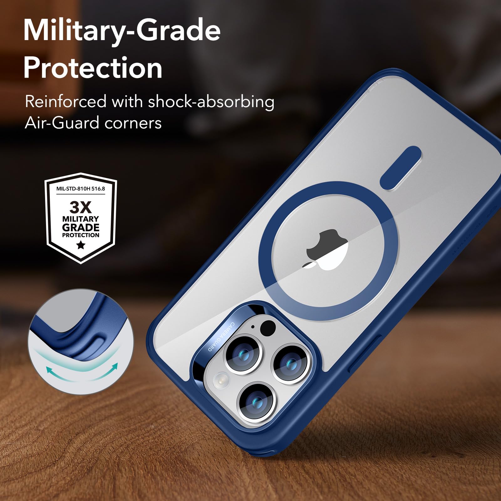 【米軍MIL規格の落下防止】iphoneケースはすべての面を完全に保護できるよう厳密にテストされ、特別に設計された衝撃吸収エアガードコーナーにより、スマホへの衝撃を和らげます。米国防総省制定米軍MIL規格に完勝(認証番号:No.GZIN2005022739PS)。