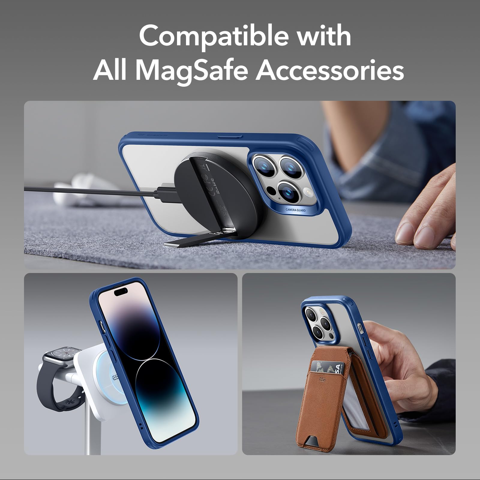 【在庫のみ】ESR iPhone 14 Pro ケース MagSafe対応 耐衝撃 米軍MIL規格 傷に強い背面 ワイヤレス充電 ストラップホール付き いphone14pro ケース HaloLock搭載 ハイブリッド磁気対応 6.1インチ クリア_ブルー Classic Series