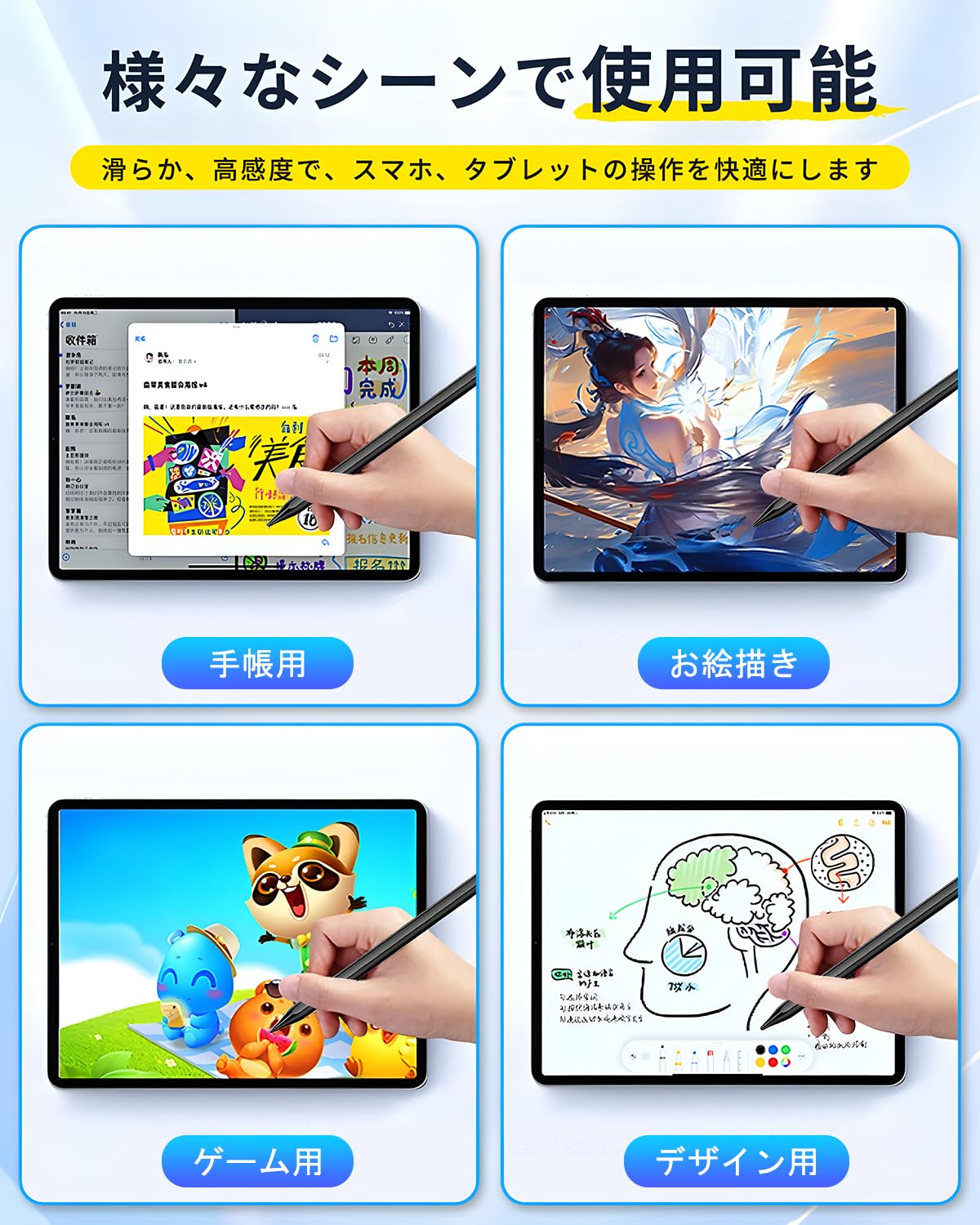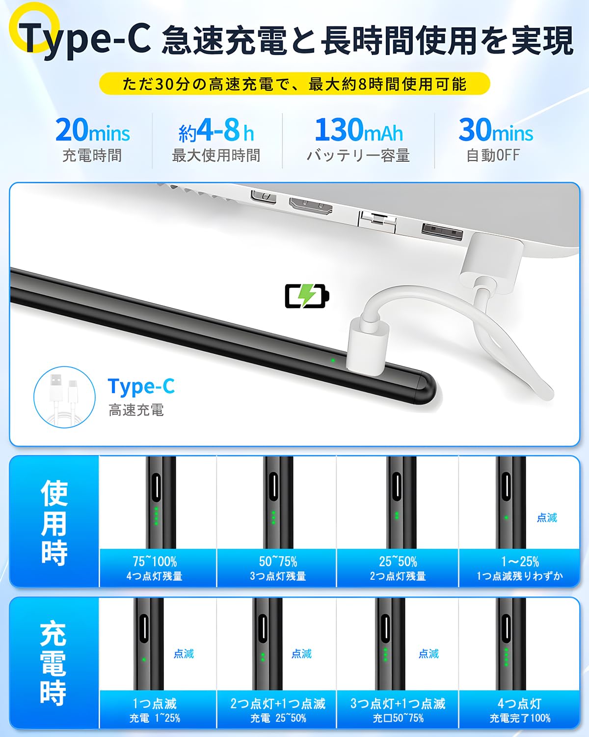 タッチペン 【2025年革新版 全機種対応】タブレット ペン スタイラスペン スマホ Type-C充電 超高精度 極細 12g超軽量 3つ交換用ペン先付き 互換ペン 電量表示/磁気吸着機能対応 軽量 耐摩 耐久 iPad・iPhone・Android・スマホ・タブレット用ペンシル 日本語取扱説明書付き