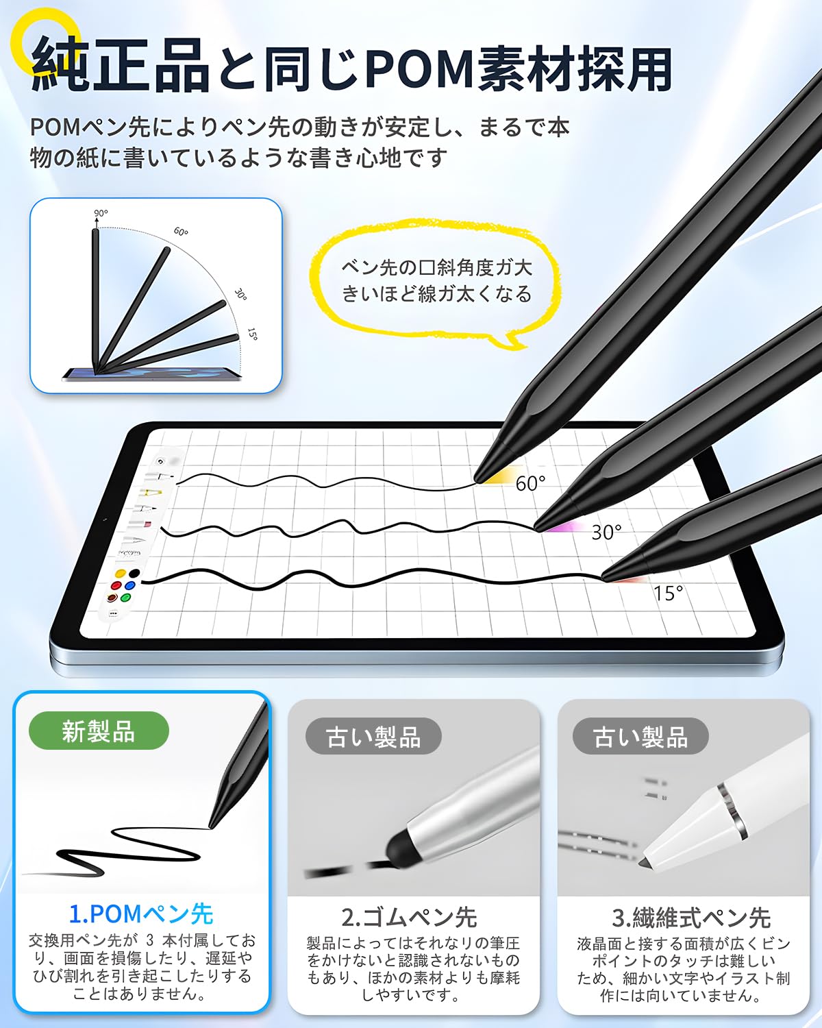 【努力特価】タッチペン 【2025年革新版 全機種対応】タブレット ペン スタイラスペン スマホ Type-C充電 超高精度 極細 12g超軽量 3つ交換用ペン先付き 互換ペン 電量表示/磁気吸着機能対応 軽量 耐摩 耐久 iPad・iPhone・Android・スマホ・タブレット用ペンシル 日本語取扱説明書付き