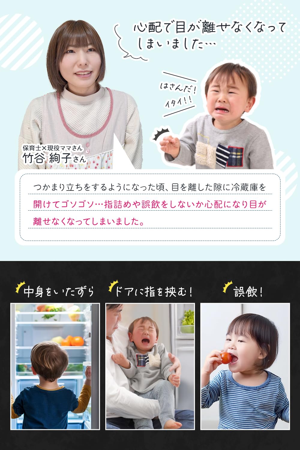 冷蔵庫ロック チャイルドロック 【保育士×現役ママさん監修】ダブルロックで子どものいたずら防止にx設置は貼るだけ RIMA RUHE (ホワイト)