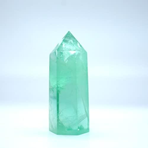 [POWERTONE] 天然蛍石原石ポイント六角柱 天然蛍石 フローライト 美しいグリーン 天然石 ホーム装飾石 グッズ クリスマス 新年 プレゼント ヒーリング サンキャッチャー置物インテリア 風水 (重さ30-50g 高さ約6.5-8.5cm, グリーン)