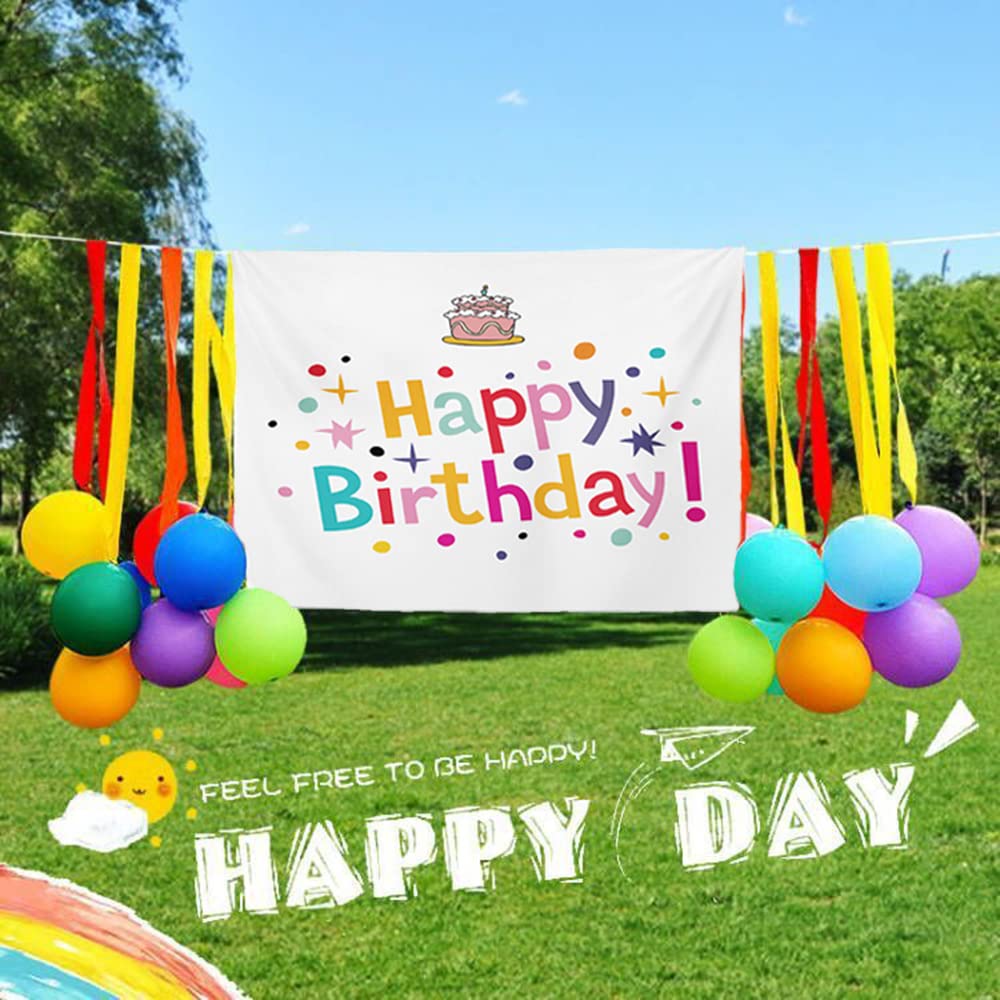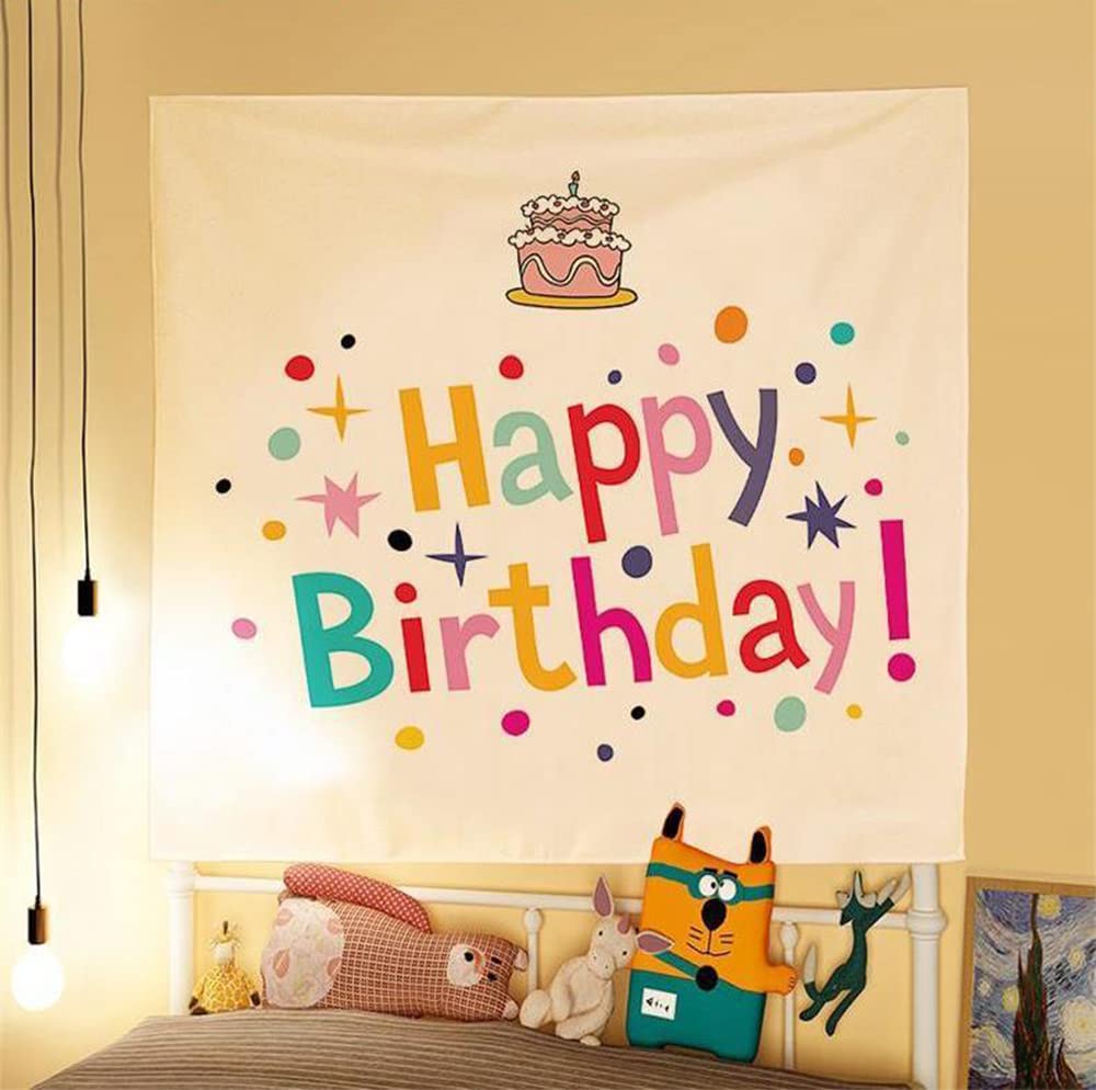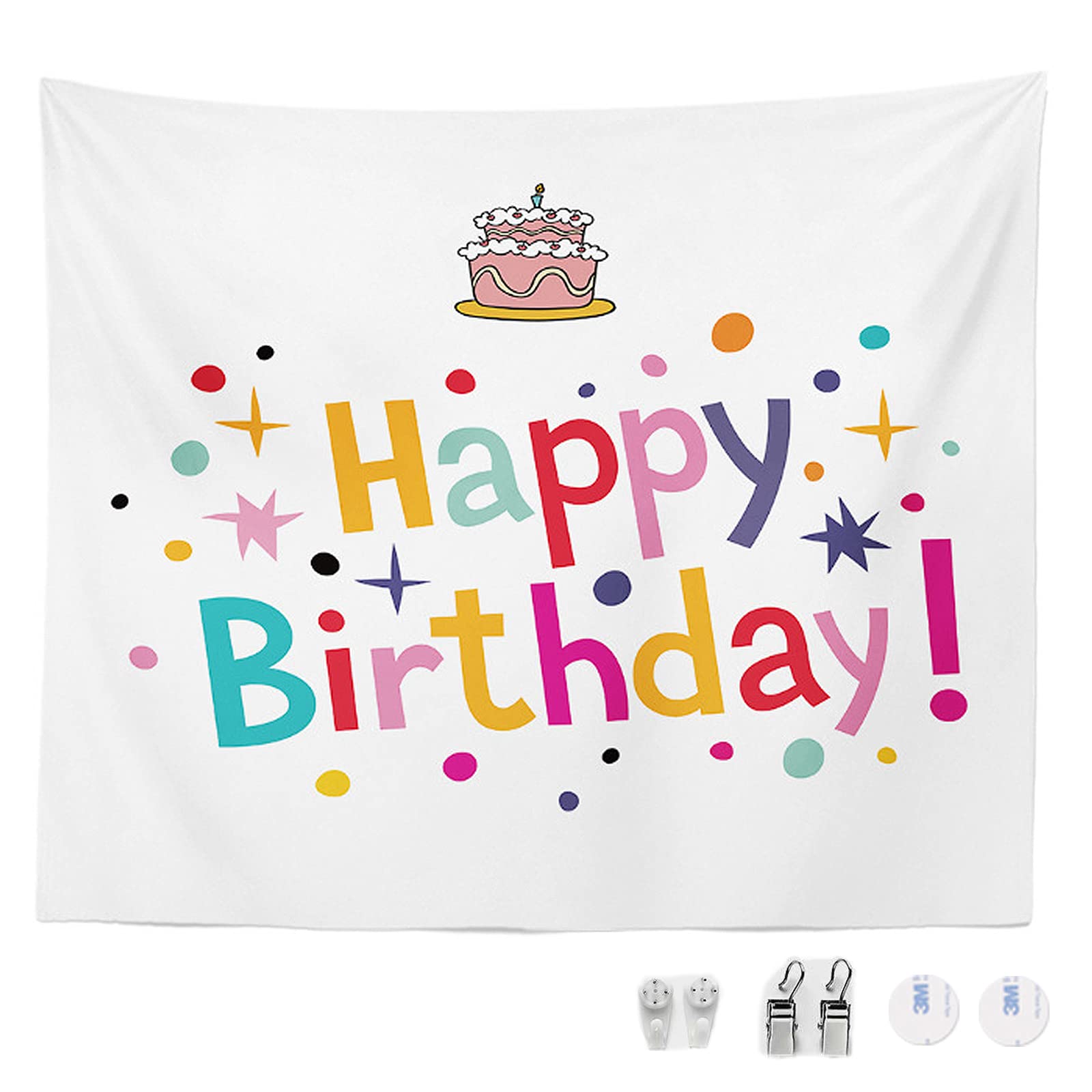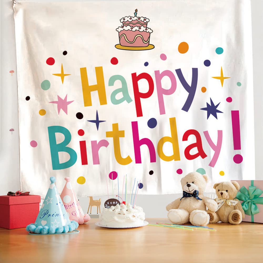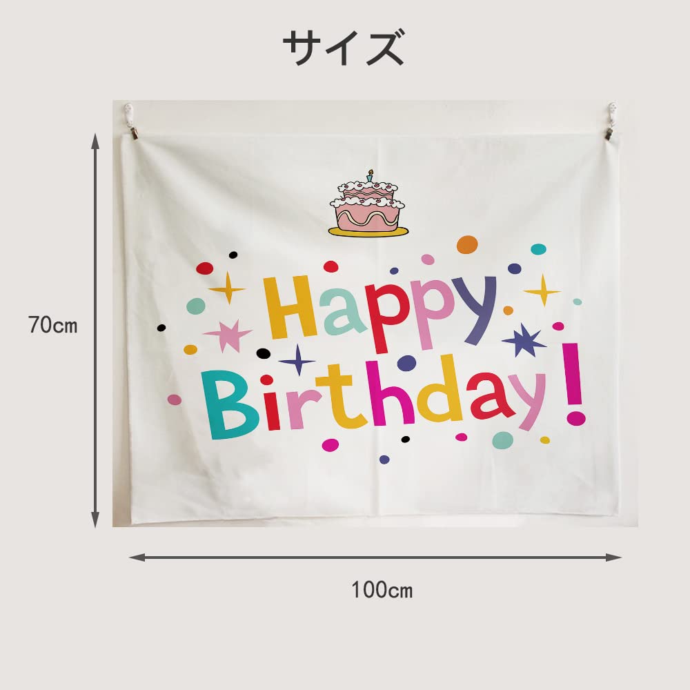 【数量限り】サムコス 誕生日 タペストリー 100cm*70cm バースデー 飾り付け 誕生日 フォトポスター 壁飾り 壁掛け装飾布 可愛い Happy Birthday パーティー 男の子 女の子 誕生日のお祝いの雰囲気を高める (ホワイト)