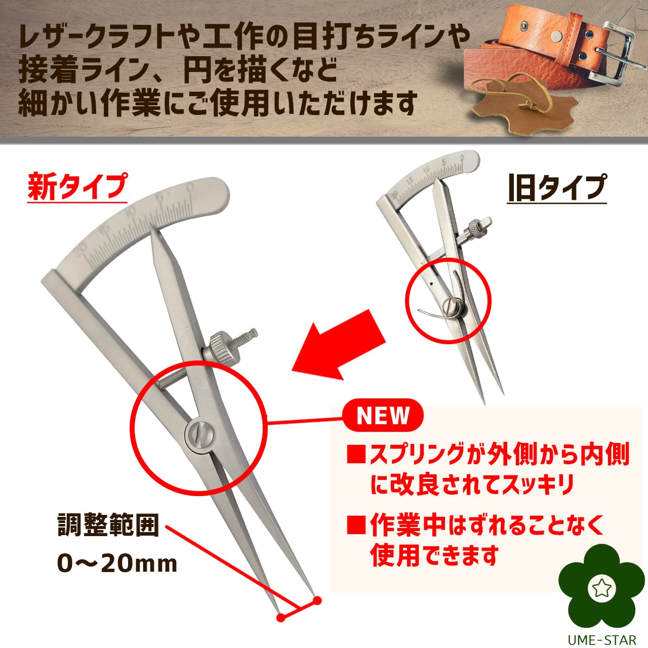 【新着特価】(UME-STAR) レザークラフト ディバイダー 目打ちコンパス ピッチゲージ エッジマーキング コンパス (スクリューロック)