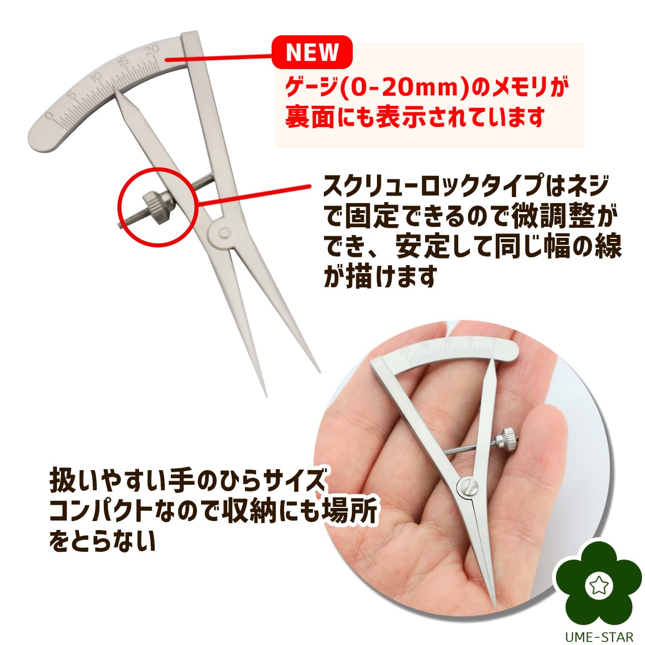 (UME-STAR) レザークラフト ディバイダー 目打ちコンパス ピッチゲージ エッジマーキング コンパス (スクリューロック)