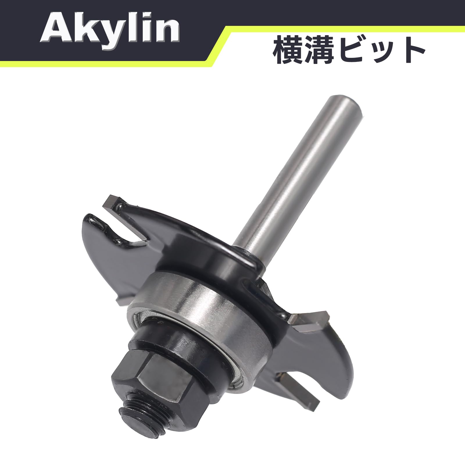 Akylin 横溝ビット T型 4枚刃 トリマービット 6mm軸 ベアリング付き スロットカッター ジョイントカッター 超硬刃 ルータービット切削深さ14.3MM 溝掘り 溝ビット 木工用 (刃長2.4mm)