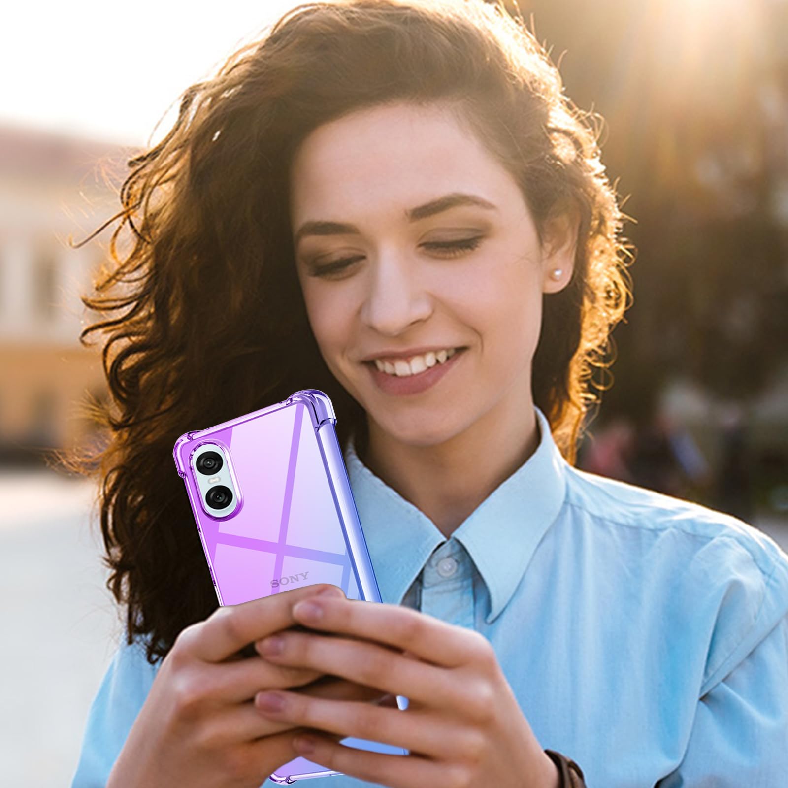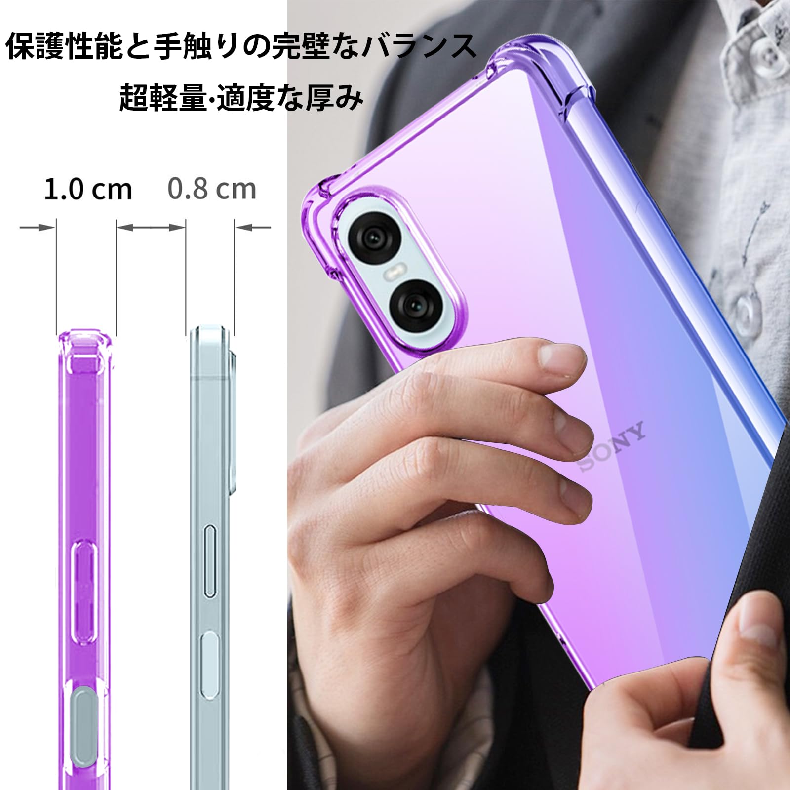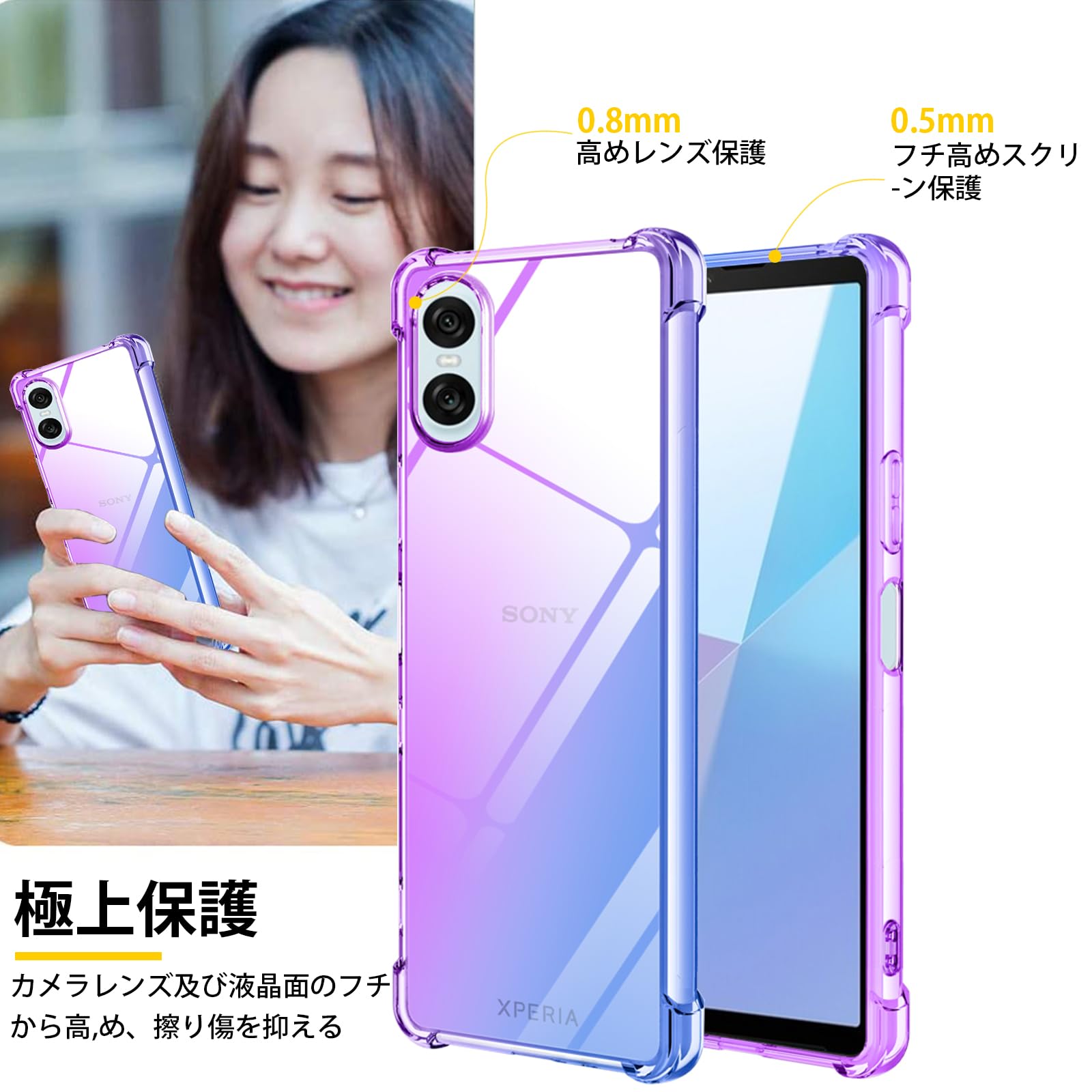 【新着特価】Xperia 10 VI ケース クリア TPU 薄型 軽量 グラデーション色 ケース 耐衝撃 衝撃吸収 カメラ保護 米軍MIL規格取得 滑り止め 黄変防止 Xperia 10 VI カバー 防塵 一体型 人気 携帯カバー(パープルブルー)